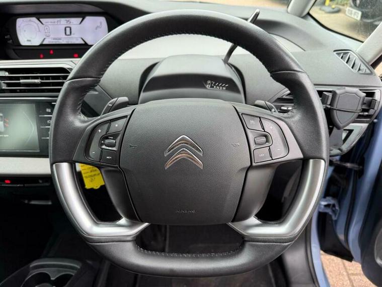 This 2015 Citroen Grand C4 Picasso BlueHDi Exclusive+ boasts exceptionally low mileage for its age, having covered just 57, 900 miles. This 7 seat MPV is a Euro 6 compliant model, powered by an efficient 1.6 litre diesel engine. It comes with an MOT valid until March 2027 and has a clear vehicle history check, offering peace of mind. Notable features include Bluetooth media streaming, automatic headlights, a panoramic sunroof with dark tinted glass, keyless access and start, and blind spot detection.