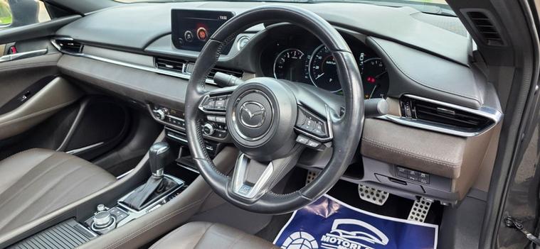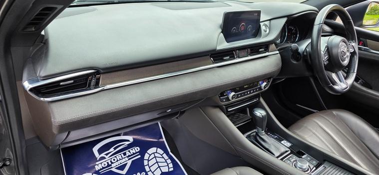 This 2019 Mazda6 SKYACTIV-G GT Sport Nav+ presents an exceptional ownership proposition with its remarkably low mileage of just 39, 477 miles for its age and a clear vehicle history. This Euro 6 compliant 2.5 litre petrol model boasts a full service history, assuring you of its well maintained condition. Inside, you will find a premium BOSE Surround Sound System for an immersive audio experience, integrated Bluetooth for seamless connectivity, and a heated steering wheel for added comfort during colder journeys. The power tilt and slide sunroof allows you to enjoy the open air, while the 4 way power adjustable driver seat with memory ensures your perfect driving position is always easily recalled.