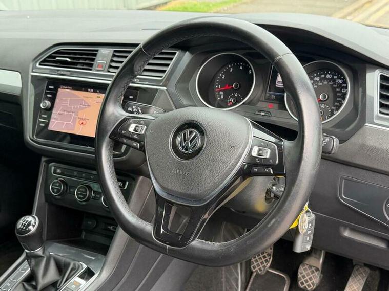 This 2018 Volkswagen Tiguan TSI SE Navigation boasts a single owner and a clear vehicle history check, offering peace of mind. Powered by a 1.4 litre Euro 6 petrol engine, this model comes with a 3 month warranty and 12 months MOT provided on purchase. It features the Discover Navigation Pro Touch Screen system with integrated voice activation, Car Net Guide and Inform Plus, and App Connect for seamless smartphone integration. The SE Navigation trim also includes an Active Info Display, 18 inch Kingston alloy wheels, and a Tyre Pressure Monitoring System for enhanced driving awareness.