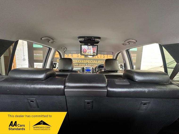 Huge specification including: Electric drivers seat, heated seats, dual zone climate controlled air conditioning, automatic xenon headlights, automatic wipers, cruise control, traction control, 4wd lock, stereo with cd & iphone/aux/usb input, twin 12v power supplies, height adjustable steering wheel, on-board computer, drinks holder, driver & passenger armrest with twin storage compartments, electric windows, electric mirrors with power-fold, twin roof mounted sun-glasses holders, steering wheel mounted stereo & cruise controls, twin illuminated vanity mirrors, multiple airbags, storage pockets in rear of front seats, rear heater controls, middle row 12v power supply, 3 x 3 point middle row seat belts, isofix, roof mounted DVD player, middle row armrest with drinks holder, headrests, middle row individual reading lights, 60/40 split folding & reclining middle row seats, rear 6 & 7 seats fitted with 3 point seat belts & adjustable headrests that fold into the boot floor when not in use with no loss of boot space, rear 12v power supply, rear drinks holder & storage compartment, remote locking & alarm, fully colour coded.
