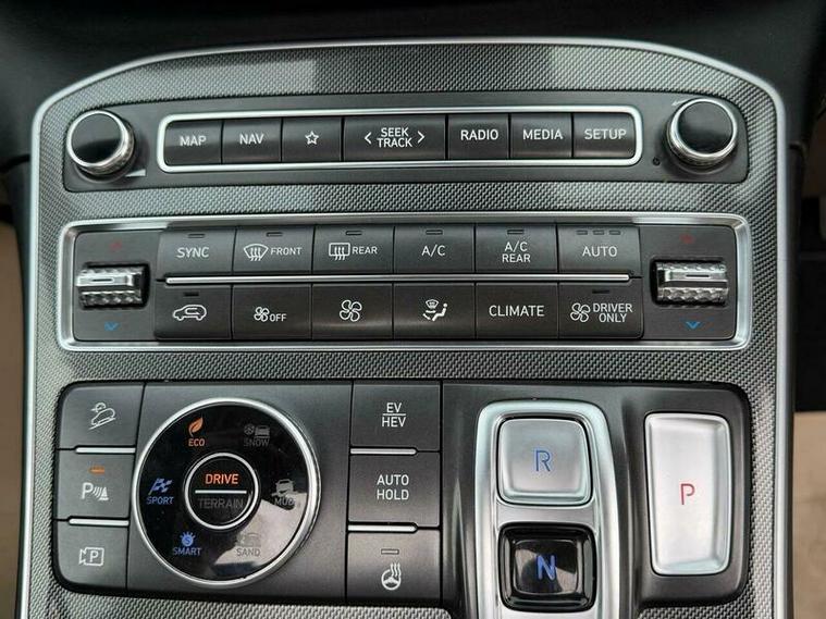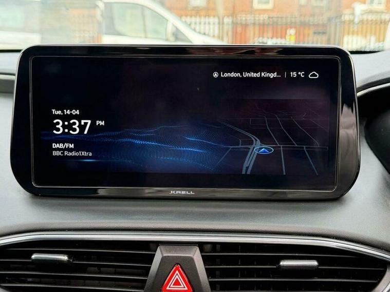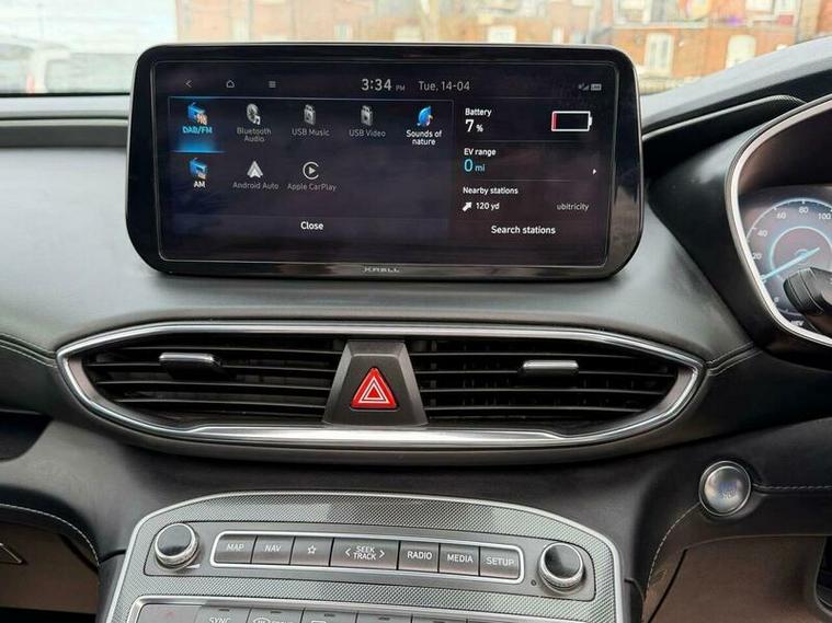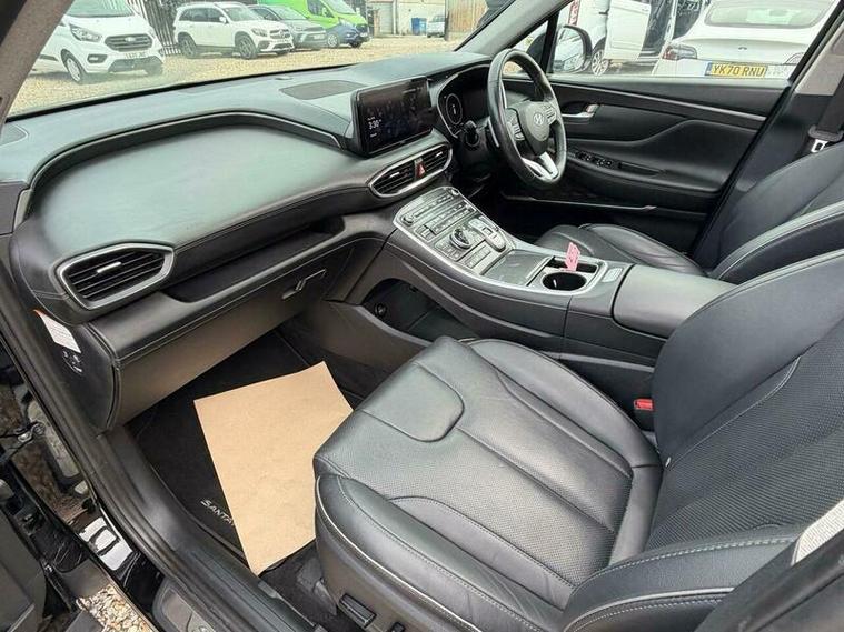 This 2023 Hyundai Santa Fe T-GDi Ultimate is a superb example, having had only one owner since new. This impressive seven seater SUV boasts a 1.6 litre petrol plug in hybrid engine, paired with a smooth four wheel drive system, and meets the Euro 6 emission standards. For your convenience, it comes equipped with front and rear parking sensors, a surround view monitor offering a 360 degree camera, and automatic headlights that activate with the dusk sensor. You can also enjoy seamless connectivity with Bluetooth and voice recognition, and the smart key allows for keyless entry and engine start stop.