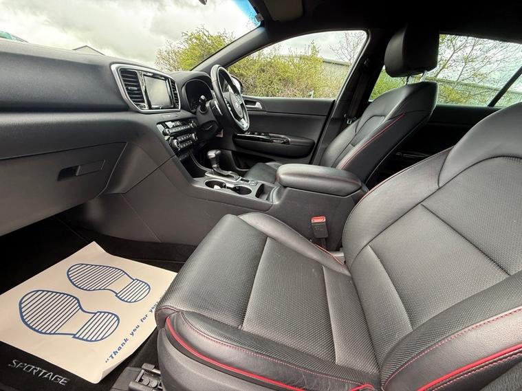 This 2019 Kia Sportage T-GDi GT-Line boasts a remarkably low mileage, supported by a full service history. This Euro 6 compliant model features a responsive 1.6L petrol engine paired with a Four Wheel Drive drivetrain, offering confident handling. Key features include keyless entry, front and rear park sensors, automatic headlight, and LED Bi-Function headlights with adaptive lighting. Inside, you'll appreciate heated front and outer rear seats, Bluetooth connectivity, voice control, apple car play and a reversing camera.