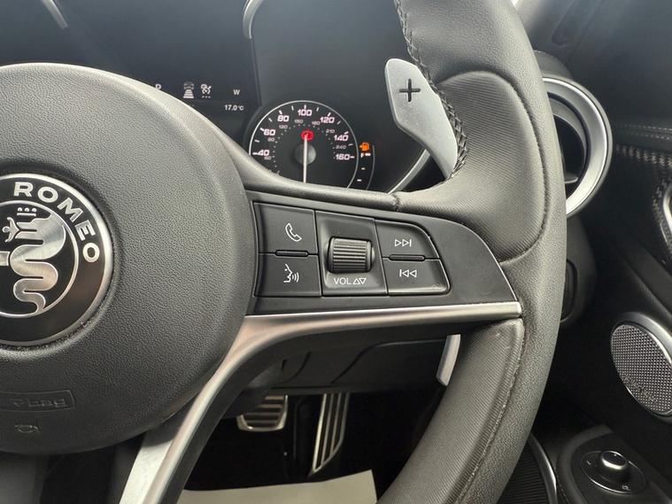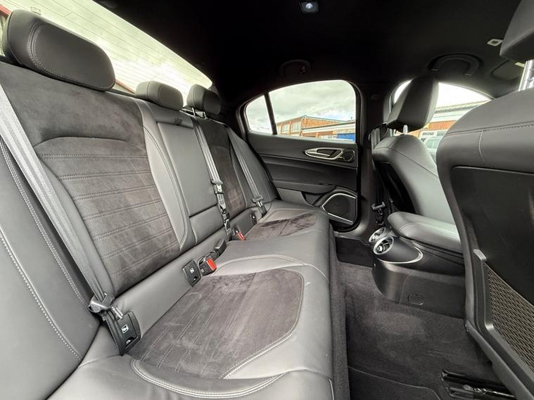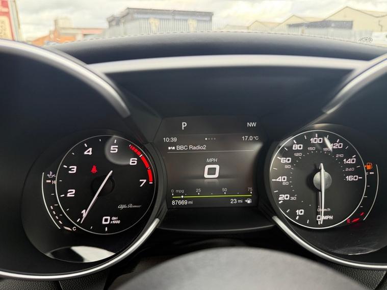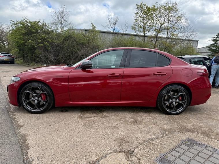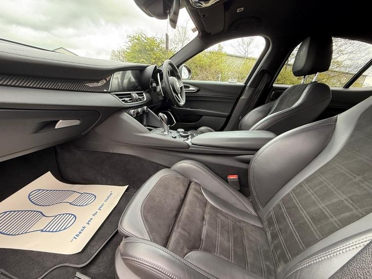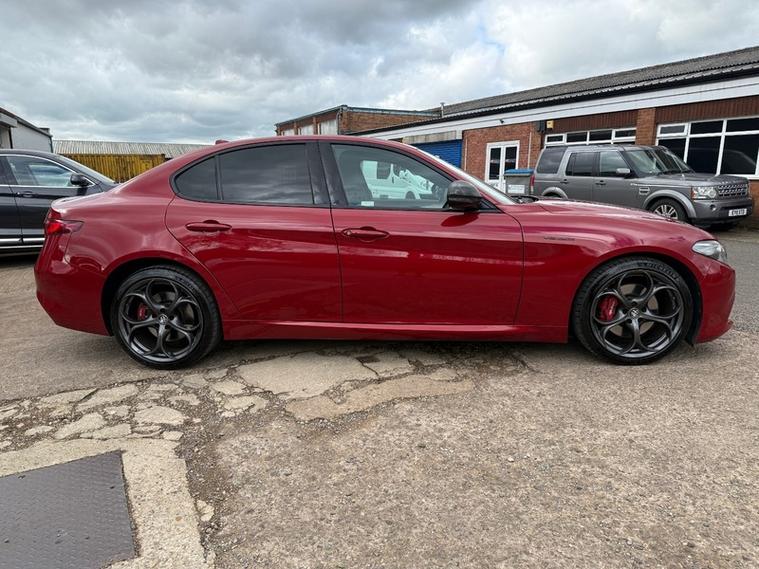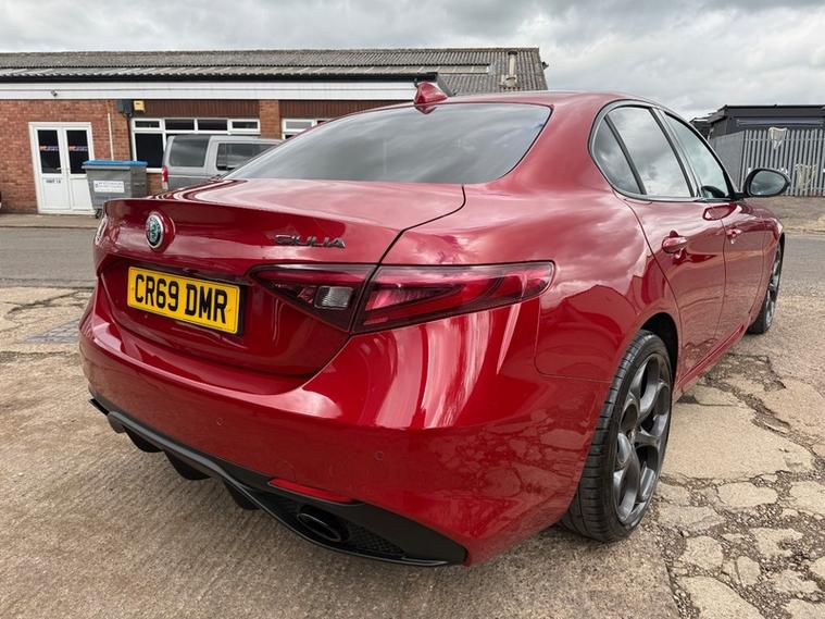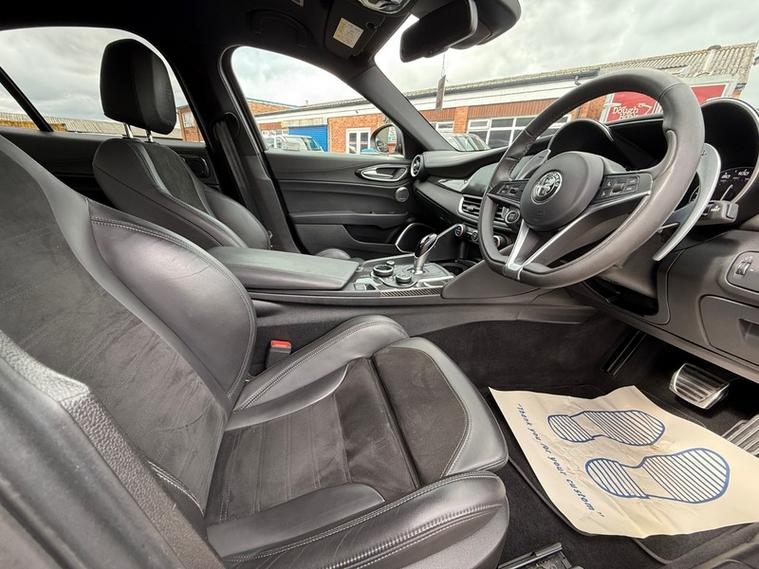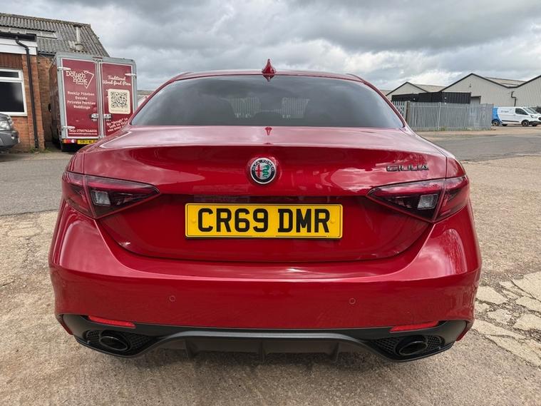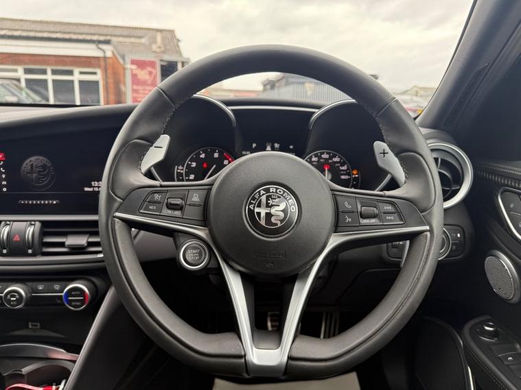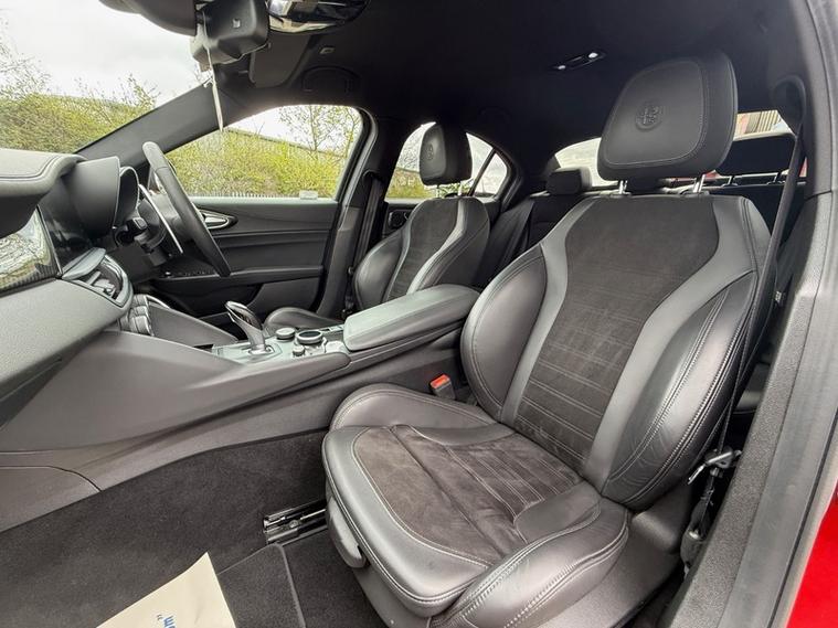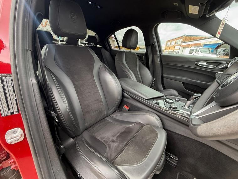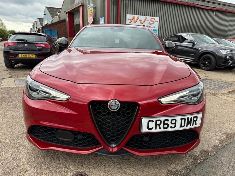 This 2019 Alfa Romeo Giulia Veloce Ti boasts a full service history, with its most recent service being carried out with us, one of the UKs leading Alfa Romeo specialist. This Euro 6 compliant 2.0L petrol model, presented in the very desireable Veloce Ti trim, offers an exhilarating 0-62mph acceleration in just 5.7 seconds. Inside, you'll find a Sound Theatre by Harman Kardon, heated front seats, heated steering wheel, car play, gear shift paddles, 3D Nav, DAB radio, rear tinted windows and lane depature warnings, all contributing to a comfortable and enjoyable driving experience. This car is ULEZ compliant, comes with two keys, has just been serviced, and will be supplied with a fresh MOT for your peace of mind.