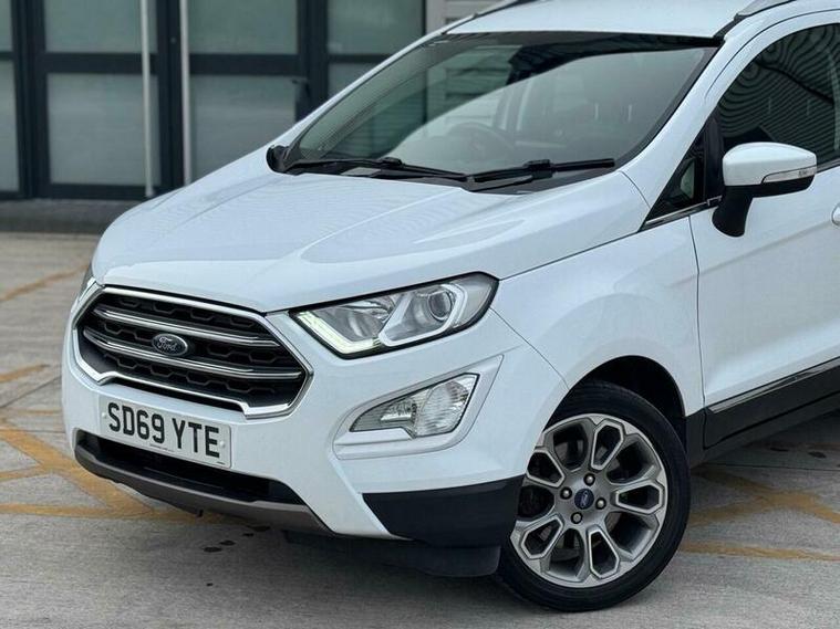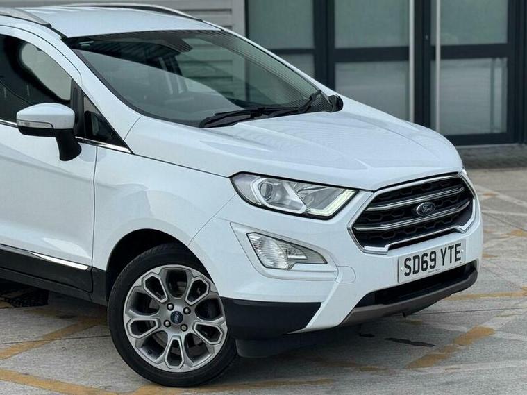 This 2019 Ford EcoSport T Titanium presents a compelling blend of style and practicality, featuring a robust 1.0L petrol engine and meeting the Euro 6 emission standards. This particular model boasts a Titanium trim, offering a refined driving experience. Key notable features include Electronic Automatic Temperature Control for effortless climate management, and a Rear View Camera Pack complete with rear sensors for enhanced parking assistance. The convenience of Automatic Headlights ensures optimal visibility, while the Ford SYNC 3 Navigation system, with its 8in touchscreen, seamlessly integrates Android Auto and Apple CarPlay for your connectivity needs.