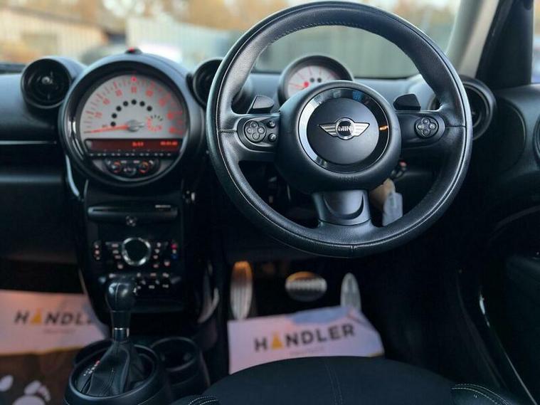 This 2014 MINI Countryman Cooper SD is presented in excellent condition and benefits from a low insurance group, making it an economical choice. Powered by a 2.0L diesel engine, this model offers a blend of performance and efficiency. It comes equipped with the desirable MINI Sport Pack, enhancing its sporty appeal. For connectivity and entertainment, you'll find full Bluetooth telephone preparation with USB audio integration, allowing for seamless handsfree calls and music streaming. The striking 18in Alloy Wheels in a 5 Star Double Spoke Jet Black Light design are complemented by black chequered door ellipses and downtubes, giving it a distinctive look. Inside, the rear centre armrest provides added comfort for passengers.