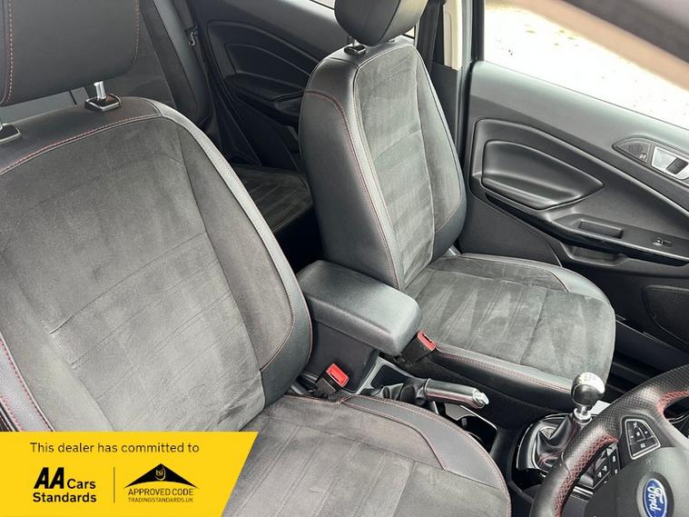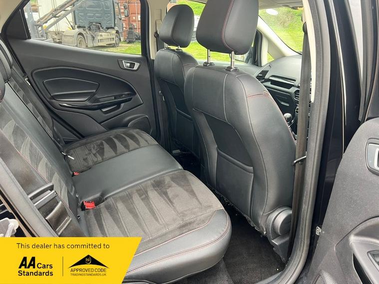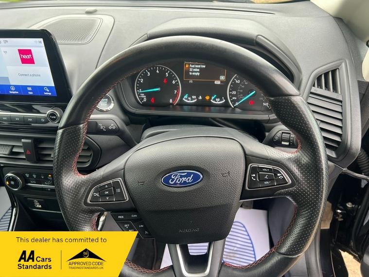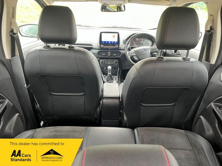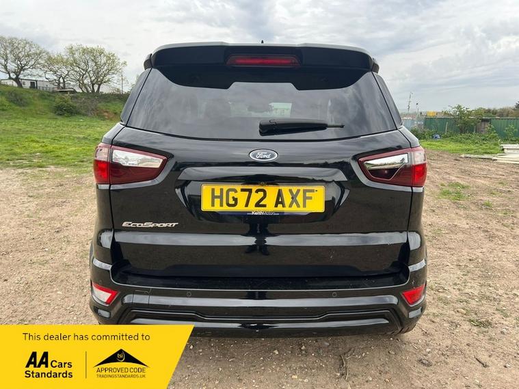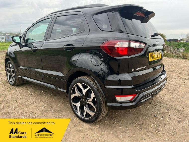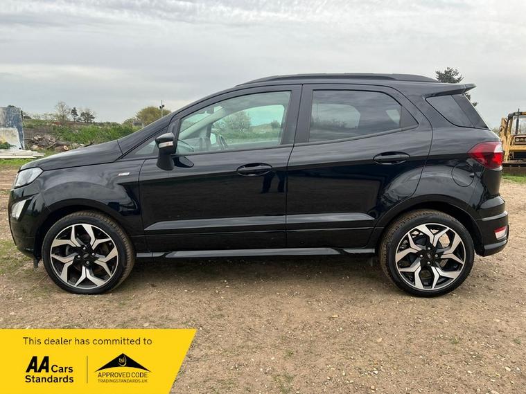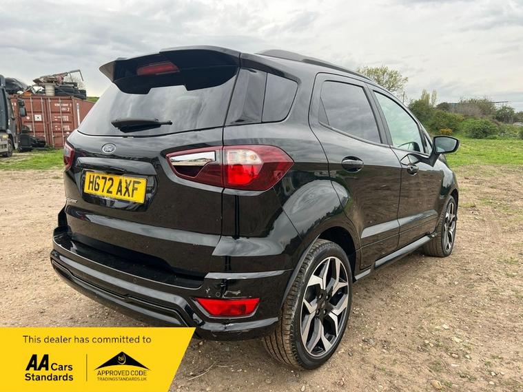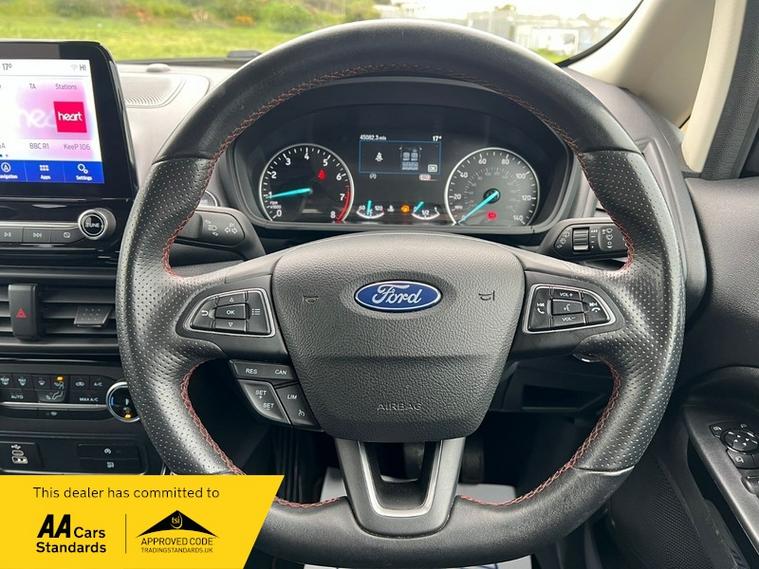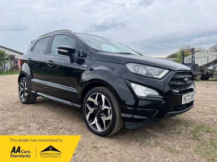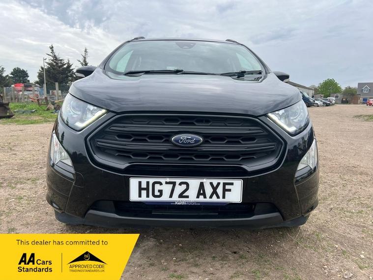 This 2022 Ford EcoSport ST Line T is presented with a clear vehicle history check and has had only one owner from new. It features a 1.0L Euro 6 petrol engine and has a documented partial service history, with its last service completed at 45, 100 miles on 01 April 2026. This model benefits from the X-Pack, which includes keyless entry and a premium branded sound system, alongside striking 18in Shadow Black machined finish alloy wheels.