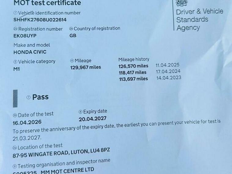 This Honda Civic i VTEC ES from 2008 boasts an exceptional history, having been owned by only 1 former keeper