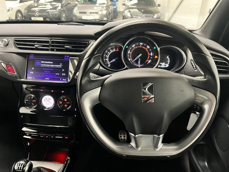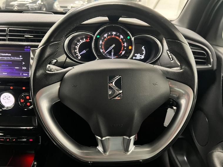 The DS 3 THP DSport is equipped with desirable features that enhance its appeal. These include striking 17in Alloy Wheels in Aphrodite Black, rear parking sensors for easier manoeuvring, and automatic digital air conditioning for optimal climate control. Enjoy seamless connectivity with Bluetooth media streaming and convenience with automatic headlights. Its impressive 0-62mph acceleration in just 7.5 seconds demonstrates its spirited performance, setting it apart from other vehicles in its class.