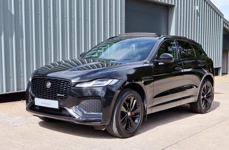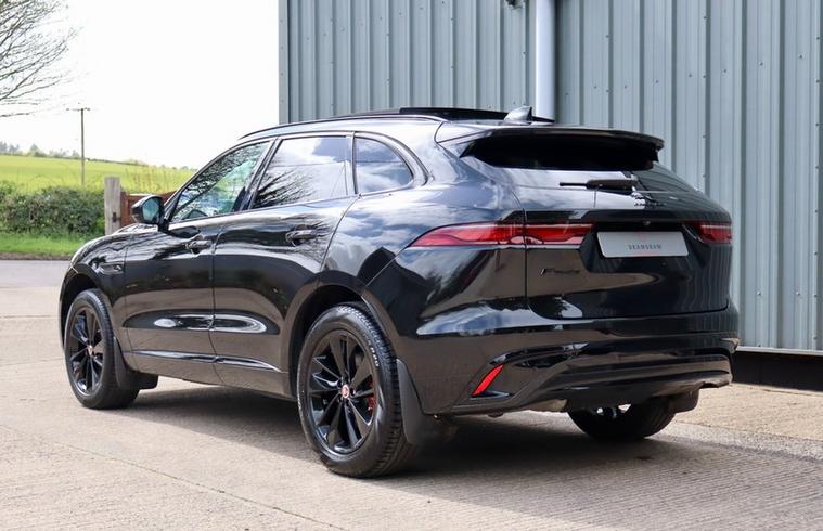 Santorini Black with Ebony Taurus Sport Leather. Sliding Panoramic Glass Sunroof. All usual R-Dynamic Black Refinements including Powered Tailgate, Electric 12 Way Front Seats, Lane Keep Assist, Privacy Glass, Heated Front Seats, Heated Windscreen and Steering Wheel and Traffic Sign Recognition. Jaguar Service History.