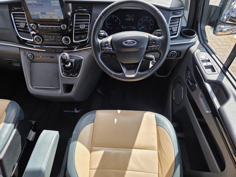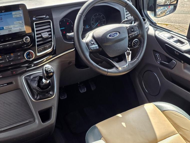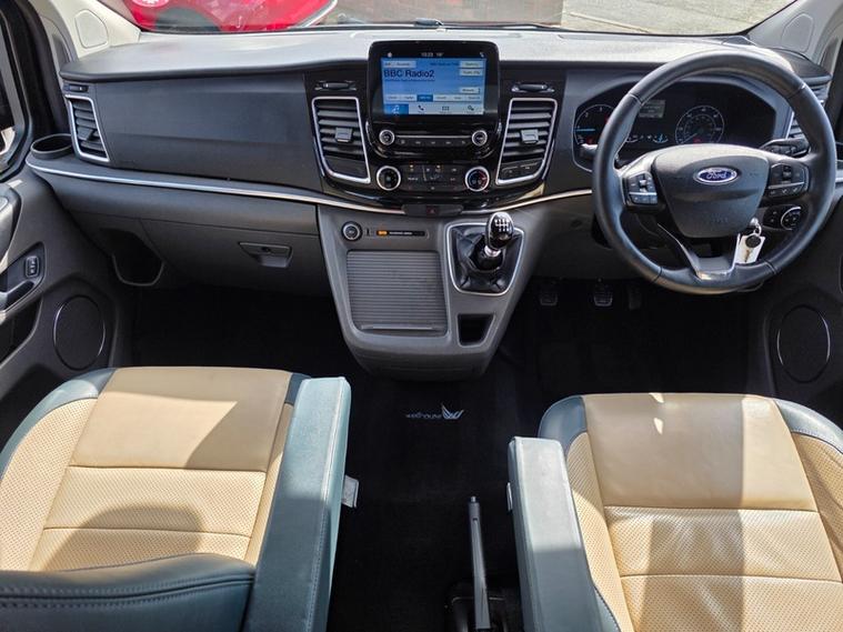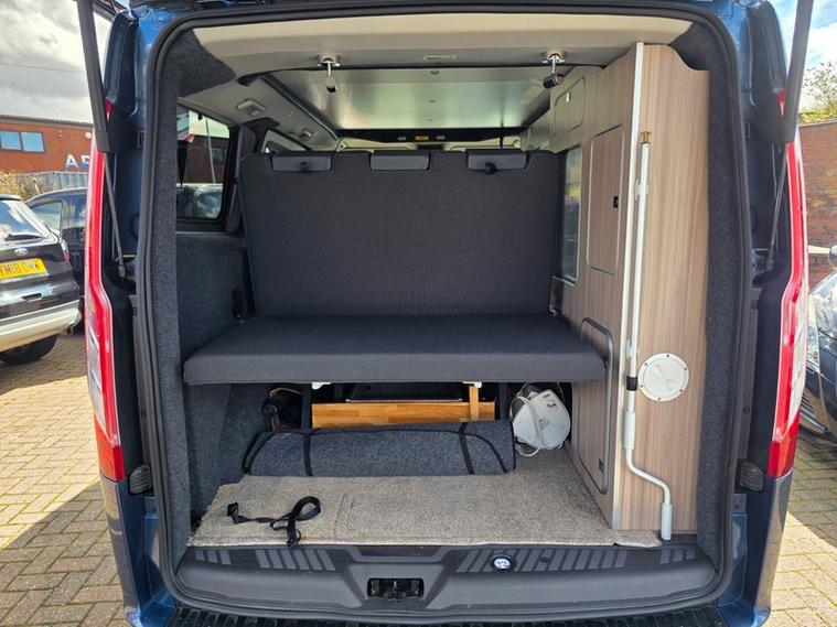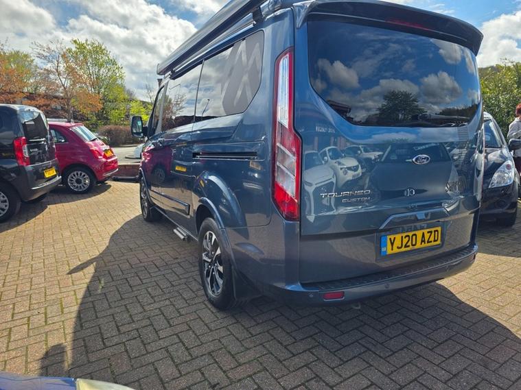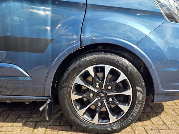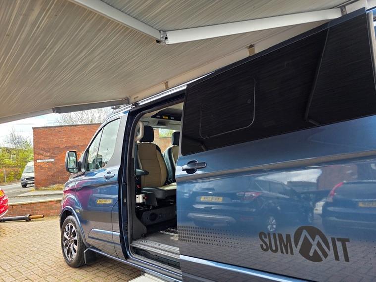 Steve Pearson Car Sales are Pleased to Present this Super Low Mileage Ford Tourneo Custom 2.0 310 Titanium Summit Camper Van in Metallic Blue. This Summit Campervan gives you the best of both worlds by blending a superb every-day vehicle with a first class camper. Summit Camper Key features include.... Quality elevating roof and bed, German crash tested sliding seat system with 3x seatbelts and ISOFix anchor point, Driver and passanger swivel (captains) seats, fly off hand brake, SMEV glass topped hob and sink, 42 litre compressor fridge, Eberspacher blown air heating system, 100 Ah leisure battery, 100w solar panel, on board fresh and waste water tanks, 12v/ 240v/ USB sockets, gas locker for 6kg gas bottle, electric hookup, double bed, Oven, Electric step, Lots of stoarage and much much more......... All usual Ford refinements include... ABS, Air conditioning, diamond cut alloy wheels, alarm, central locking, cruise control, electric windows/mirrors, power steering, adjustable steering, climate control, heated leather seats, Bluetooth, body coloured bumpers, brake assist, daytime running lights, front airbags, front fog lights, heated windscreen, reversing camera, DAB radio, touch screen media system, steering wheel controls, traction control etc.... This is a Stunning Example. ready for adventure straight away.