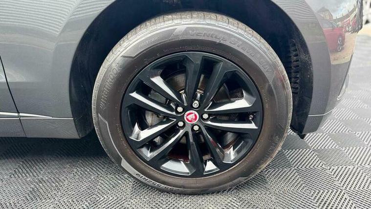 This 2018 Jaguar F PACE D240 R Sport boasts a recent full service completed on 2026 04 09 at 99205 miles and MOT until 20/01/2027 with no advisories, ensuring it is ready for its next owner. This Four Wheel Drive model features a 2.0L Diesel Engine, meeting Euro 6 emission standards. The R Sport trim enhances its appeal, complemented by a Meridian Sound System offering 380W of audio clarity and a Luxury Branded Sound System. Parking is made easier with both Front and Rear Parking Aid, including a Rear View Camera. Visually, it is distinguished by Dual Tailpipes with 75mm Finishers and the 25d AWD Badge.