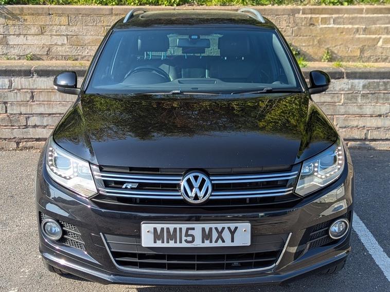 She is a June 2015 on a '15' Plate VOLKSWAGEN TIGUAN 2.0 TDI BLUEMOTION TECH 4 MOTION R-LINE AWD 4x4 140 BHP 6 Speed MANUAL, 5 Door Station Wagon. Finished in BLACK Metallic with EBONY LEATHER Interior and 18'' Alloy Wheels & A FULL Service History (Inc.CAMBELT & WATERPUMP in Feb.'22) to date. As always, Sold with a FULL Service to Schedule, New 12 Month MOT, 3 Month / 3000 Mile 'DRIVER' Warranty & 12 Months Basic AA Breakdown Cover.