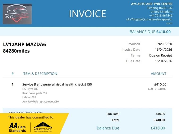 Spent 410£ at the last service and MOT repairs.(receipt attached).
