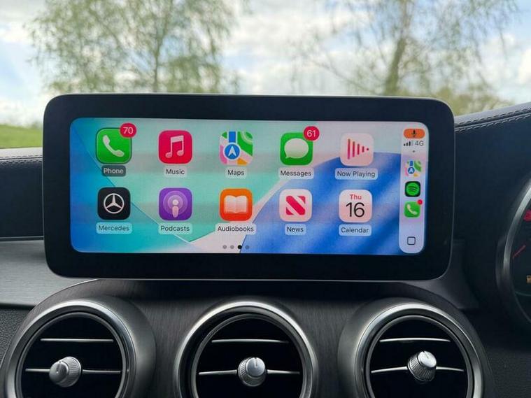 This 2018 Mercedes Benz C Class C220d AMG Line (Premium) offers a blend of sophisticated style and advanced technology. Powered by a 2.0L Euro 6 diesel engine, this model boasts the desirable AMG Line trim and the Premium Package, enhancing your driving experience with features like Android Auto, Apple CarPlay, and wireless phone charging. Enjoy the convenience of LED headlights, THERMATIC two zone automatic climate control, and heated front seats for ultimate comfort. Manoeuvring is made effortless with the Active Parking Assist, which includes front and rear sensors, complemented by a reversing camera.