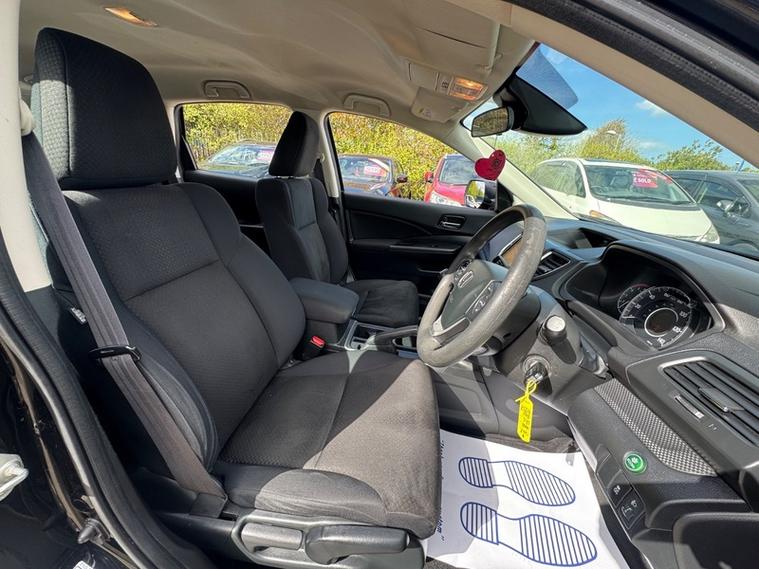 2018 Honda CR-V 1.6 i-DTEC S 5dr 2WD [Nav] in Black. 2 Owner Example with 2 keys and 9 Service Stamps. Very good condition throughout. Ultra reliable chain driven 1.6 i-DTEC Honda diesel engine easily capable of 250, 000+ Miles. Exceptional running costs for this spacious SUV, 64+ MPG combined. ULEZ compliant Euro 6 diesel. Good specification with Navigation, Reverse camera, Bluetooth Phone + Music, Digital dual climate control wot working air conditioning, DAB Radio, Economy mode, 17 inch alloy wheels and more. 12 Months MOT, Service and 6 Months Warranty with the sale. A fantastic vehicle for those that seek Practicality, Safety, Reliability and Economy. Great value late Mark 4 Facelift CR-V. Finance Available.