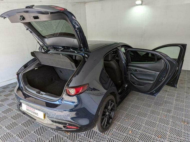 This 2019 Mazda3 SKYACTIV-G GT Sport is a well equipped example of Mazda's popular hatchback. It features a 2.0 litre petrol engine and meets Euro 6 emissions standards. Inside, you'll find integrated Bluetooth for seamless phone connectivity, an AM-FM-DAB radio with a single CD/MP3 player and a premium 12 speaker Bose surround sound system. For convenience and safety, this GT Sport model includes a reversing camera with rear parking assistance and dusk sensing headlights that automatically turn on.