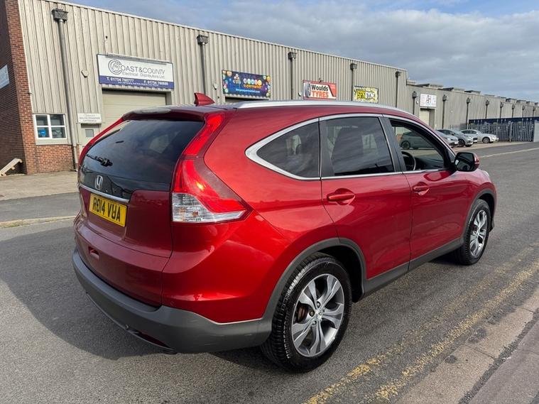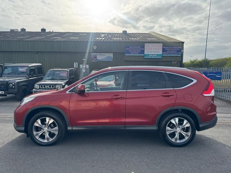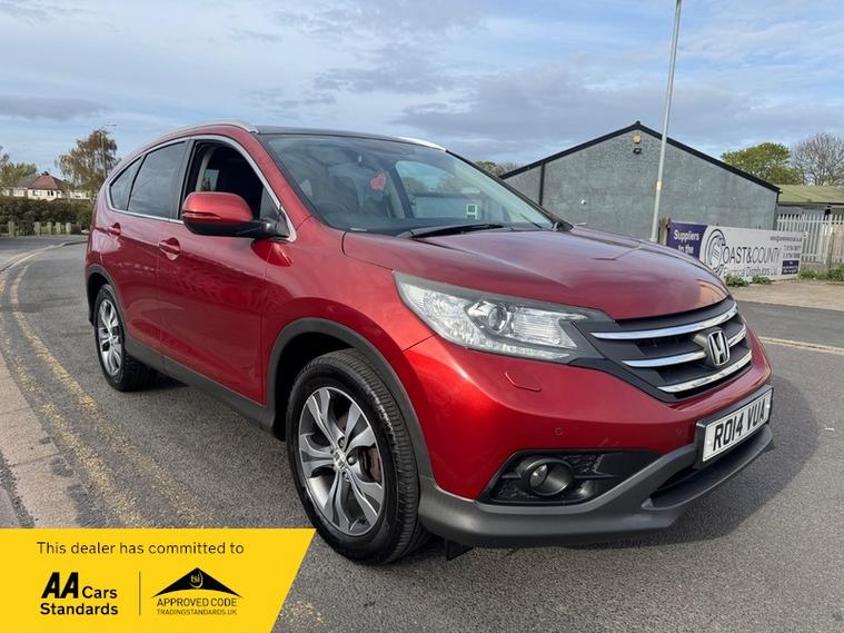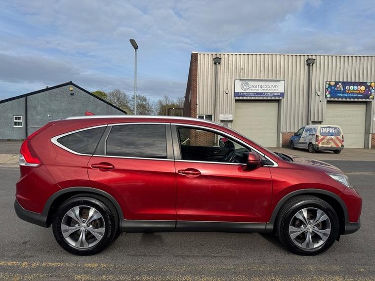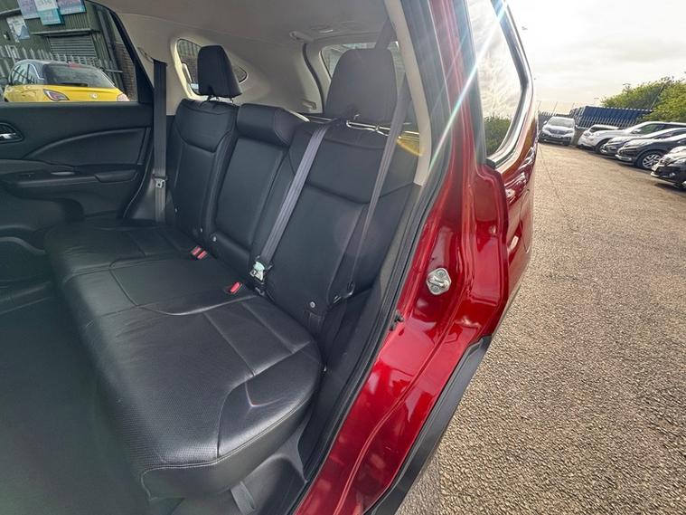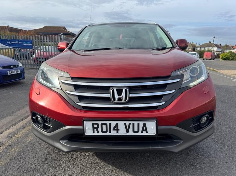 2014 Honda CR-V 2.0 i-VTEC EX 5dr Automatic in Red. 2 Owner Vehicle, 2 keys and Full Service History with 12 Services. Very reliable 2 litre Honda petrol engine easily capable of 250, 000+ miles. Timing chain (no costly belt changes), no turbos or dpf this is about as simple and reliable as it gets with iconic Honda engineering. The 2 litre Petrol is also ULEZ compliant. Runs and Drives brilliantly without fault. Good condition throughout and presented in the most popular colour, Passion Red pearl. Top spec EX model with Navigation, Reverse camera, Panoramic glass roof with electric blind, Power folding tailgate, Economy mode, Heated electric heated seats, Bluetooth connectivity, DAB Radio, Front and rear parking sensors, 18 inch alloy wheels, Automatic lights/wipers and more. April 2027 MOT, Fresh Service and 6 Months Warranty with the sale. A great car for those that seek practicality, safety, comfort and reliability. Permanent 4WD. Can achieve 36+ MPG combined.