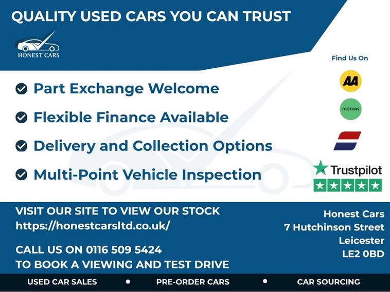 At Honest Cars, every vehicle is carefully prepared by our experienced team to ensure it meets UK trading standards and is ready for its next owner. We believe in doing business the right way - honest, straightforward, and transparent. The car you see is the car you get. All photos and descriptions are genuine, with no hidden surprises or misleading details. For added peace of mind, we work with AA Warranty, helping to protect your vehicle for the long run.