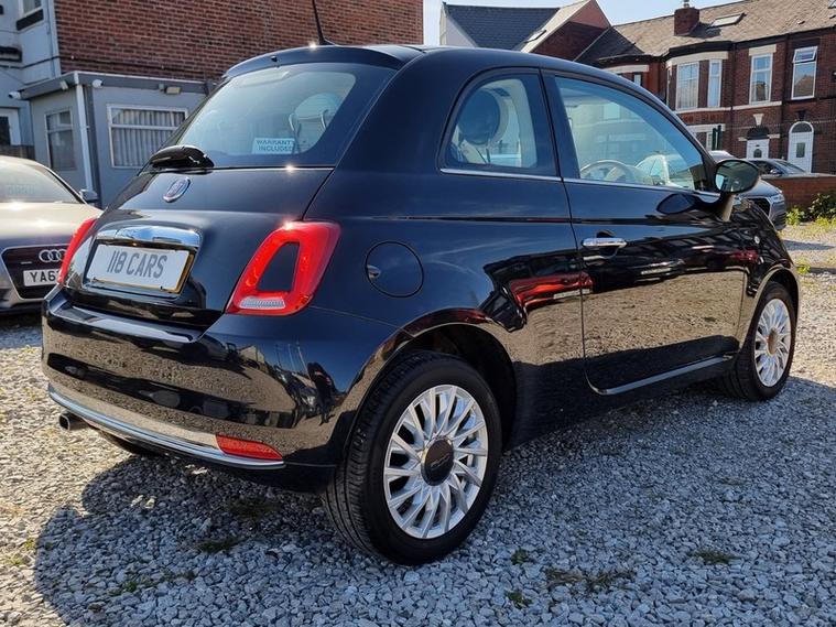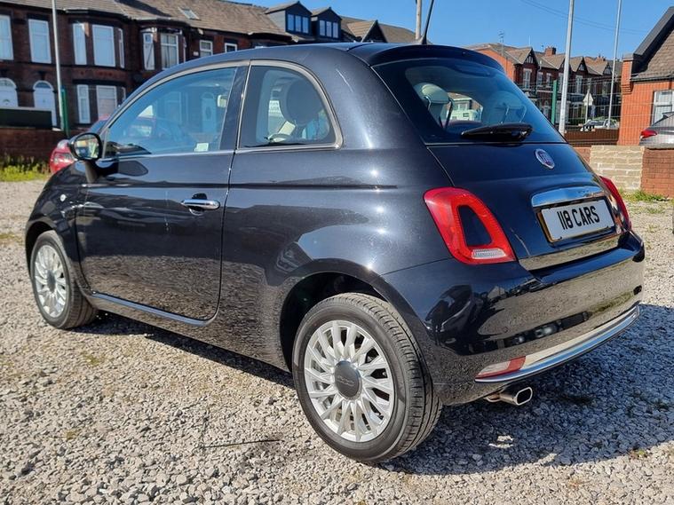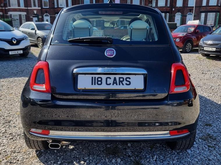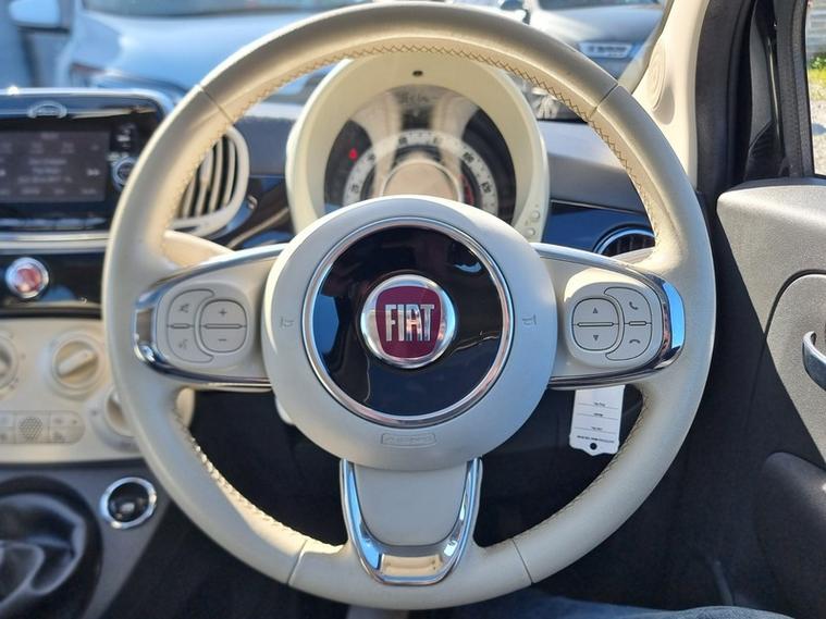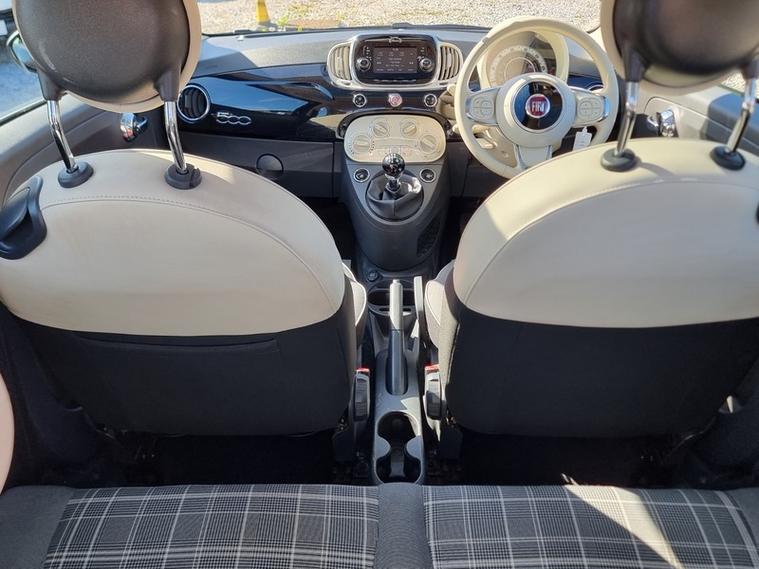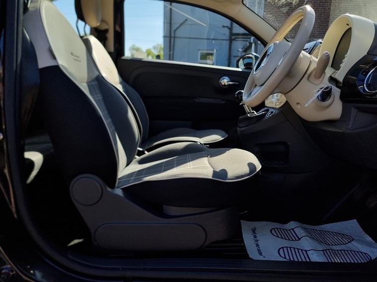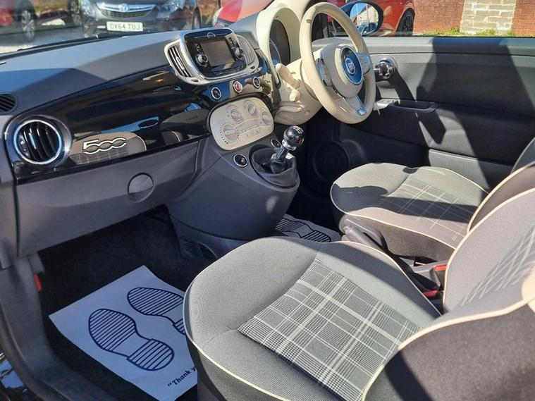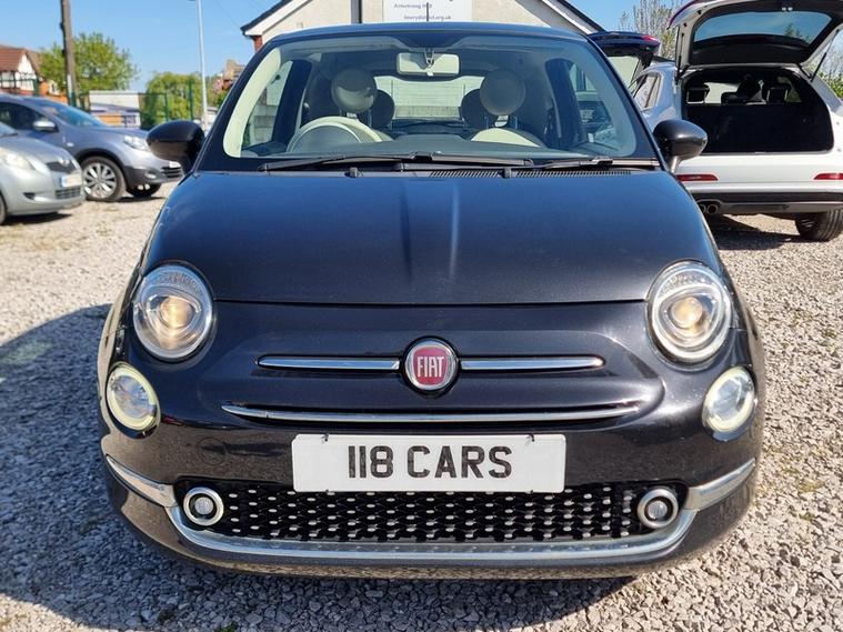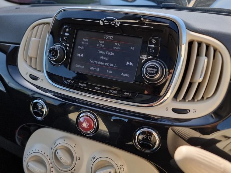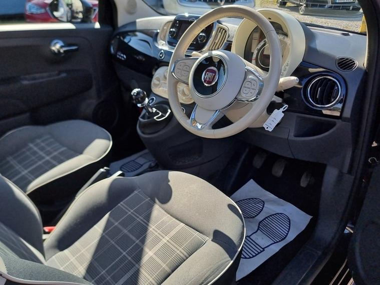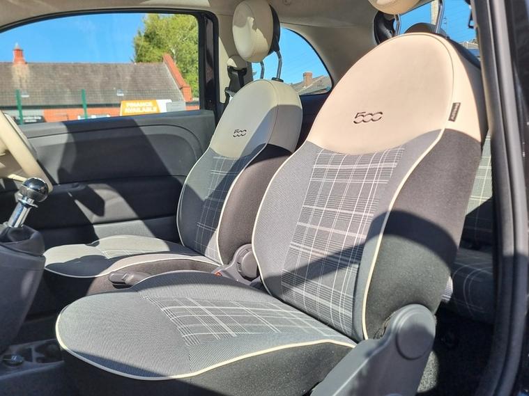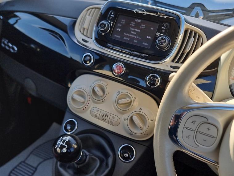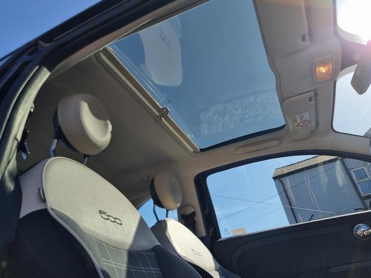A beautiful example of the Fiat 500, finished in black, with just 1 FORMER KEEPER, 2 keys and service history. Supplied with a great specification including a Panoramic Glass Roof, contrasting Cream Leather and Black interior, Multi-function Steering Wheel, Parking Sensors, Fog Lights, Multimedia Screen, Bluetooth Connectivity, DAB Radio, Cruise Control, Auto Headlights and much more.