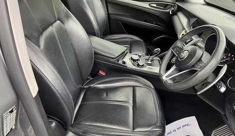 This car comes with 5 seats, Grey, 2 owners, Upgrades - Convenience Pack, 19in Alloy Wheels - Dark 5-Hole, Rear Backup Camera, Compact Spare Tyre, Brake Calipers - Black, Leather - Black, Standard Features - 1 Aux-in Line, 12v Plug, 19in Alloy Wheels - 10-Spoke, 2 Front USB Ports, 2 Rear USB Ports, 7in Colour TFT Instrument Cluster, ABS - Anti Lock Braking System, Air Vents - Rear, Airbags - Driver, Airbags - Passenger, Alfa Connect 3D Nav 8.8in Infotainment System, Aluminium Metal Sports Pedals and Footrest, Autonomous Emergency Braking - AEB, Brake Calipers - Red, Chrome Window Surrounds, Cold Weather Pack, DAB Radio, Door Sill Scuff Plates - Bright Chrome, Double Lateral Chrome Exhaust Pipe, Dual-Zone Automatic Air Conditioning, Dusk Sensor - Rain Sensor, ESC - Electronic Stability Control, Electric Windows - Front, Electrically Adjustable Seat Pack, Electrochromic Rear View Mirror, Fix and Go Puncture Repair Kit, Front Fog LED Projector, Front and Rear Floormats, Functional LED Lighting, Hill Descent Control, LED Tail and Brake Lamps, Lane Departure Warning - LDW, Lighting Pack, Parking Sensors - Front, Parking Sensors - Rear, Power Folding Mirrors, Power Steering, Power Tailgate, Remote Central Locking, Remote Tailgate Release - Key Fob Button, Shift Paddles on Steering Column, Speakers x8, Sport Package, Steering Wheel - Leather-Sports, Steering Wheel Controls, TPMS - Tyre Pressure Monitoring System, Two Tone Dashboard with Aluminium Interior Finishing, Vehicle Theft Alarm with Hood Protection and Intrusion Sensor - Thatcham,