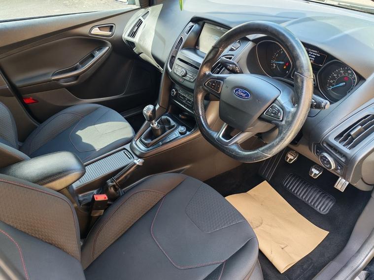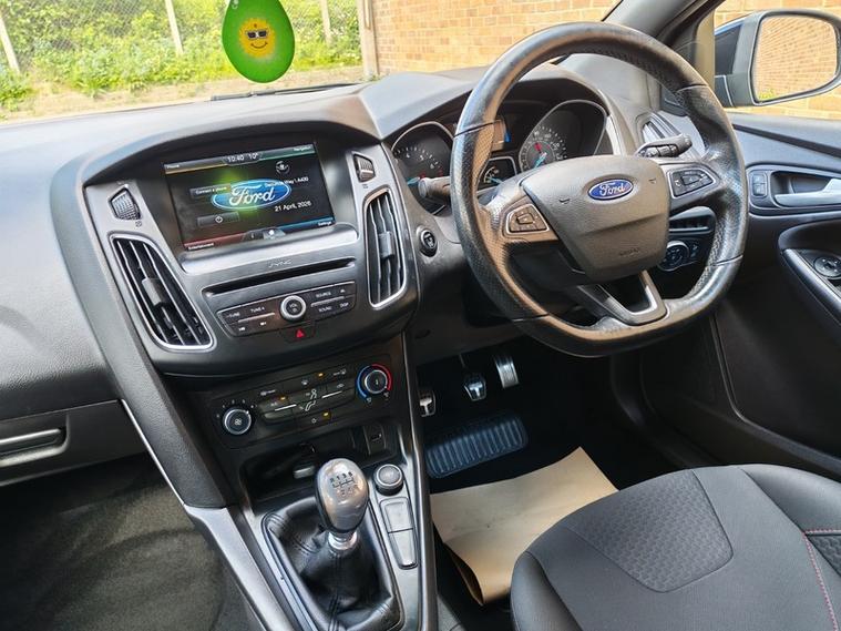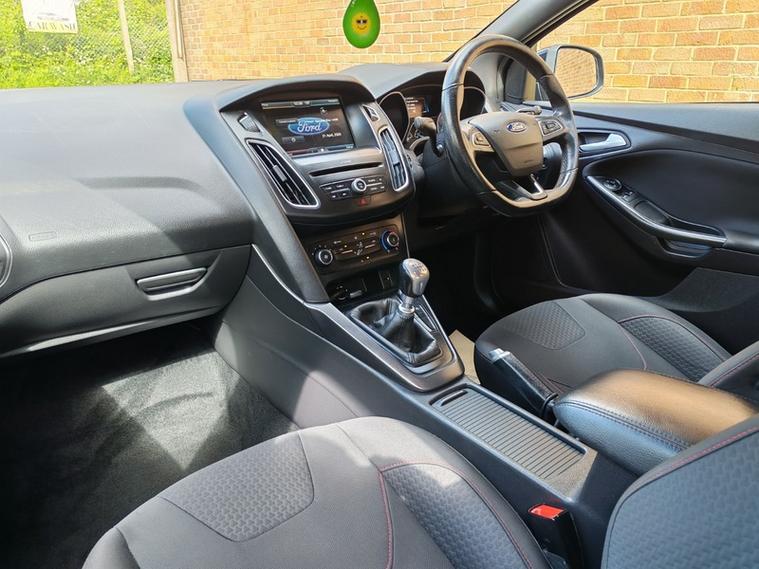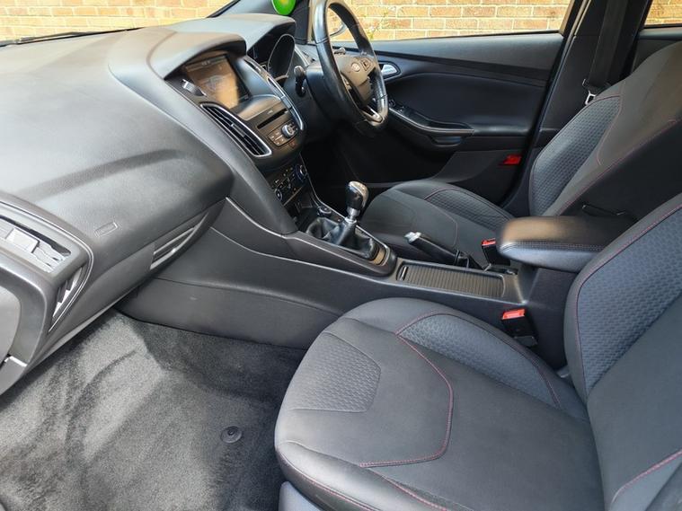 We have this lovely example of the Ford Focus ST-Line just come into stock with outstanding service history. This car has had a recent new wet belt and is in lovely condition. The drive is faultless and with the exterior pack makes it a very attractive car. This Focus is the ideal family hatchback with its low running costs and spacious interior. The 1.oltr engine offers low insurance, great mpg and only costs £30 to tax. Inside you will find lots of features that include DAB radio, Air conditioning, voice activated bluetooth, quick clear heated front screen, sat nav and more. The exterior is set off by the large St-Line alloy wheels against the metallic black finish.
