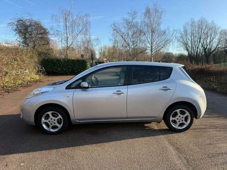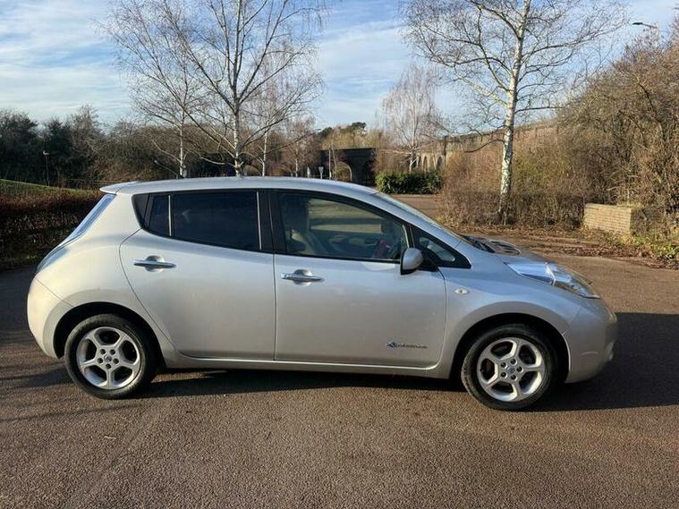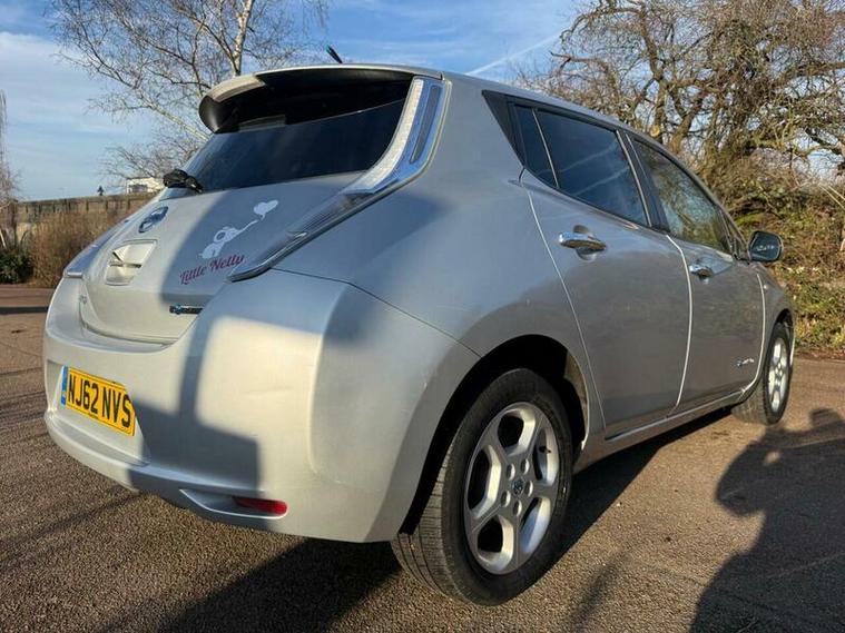 The Nissan Leaf is a 2012 model, a pioneering electric vehicle that has been making waves in the UK's eco-friendly motoring scene. With a battery total capacity of 24 kWh, this Leaf is powered by a reliable electric motor, offering a maximum range of 109 miles at the time of its new release. This impressive range is made even more convenient with the ability to charge at home in just 8 hours using a 7kW charger. When you're on the move, you can quickly top up your battery to 80% in just 30 minutes at a public charging point.