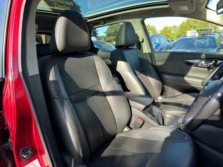 Finished in the gorgeous MAGNETIC RED METALLIC, this Qashqai is completed with its FULL BLACK LEATHER INTERIOR. It comes with FULL SERVICE HISTORY. The vehicle only has 2 FORMER KEEPERS FROM NEW. The MOT is valid until 20/08/2026. Upon request, a new 12 months MOT can be issued