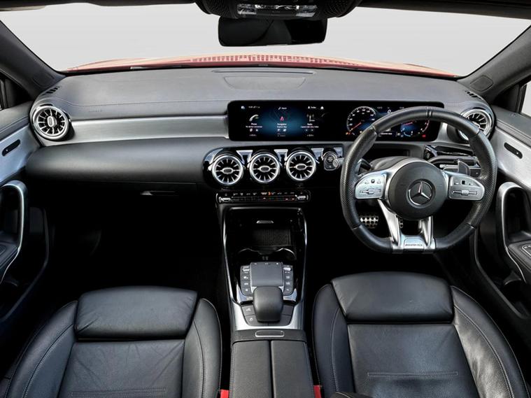 This 2020 Mercedes Benz A Class A35 AMG Premium boasts an MOT valid until October 2026, offering peace of mind for the road ahead. This Euro 6 compliant model features a powerful 2.0 litre petrol engine paired with a four wheel drive drivetrain, ensuring excellent performance and grip. Inside, you will find the comfort of heated front seats and the convenience of dual Bluetooth interfaces. The striking LED High Performance Headlamps with integrated LED Daytime Running Lights not only enhance visibility but also contribute to the car's distinctive appearance. Experience exhilarating performance with this A35 AMG, capable of accelerating from 0 to 62mph in a swift 4.7 seconds, a testament to its AMG tuning. This impressive acceleration capability sets it apart from many other vehicles in its class. Furthermore, the generous boot space provides ample room for luggage or shopping, making it a practical choice for everyday use and longer journeys alike.