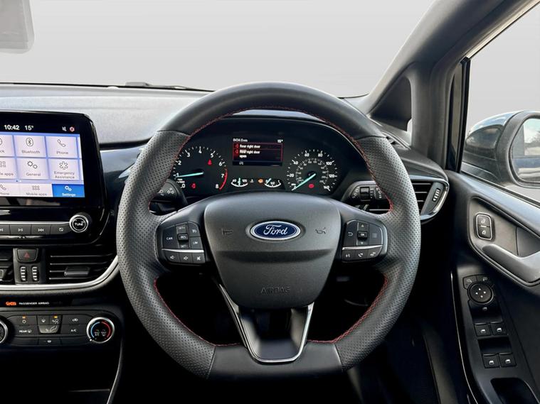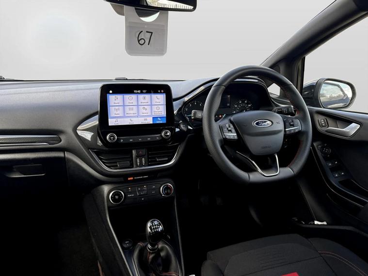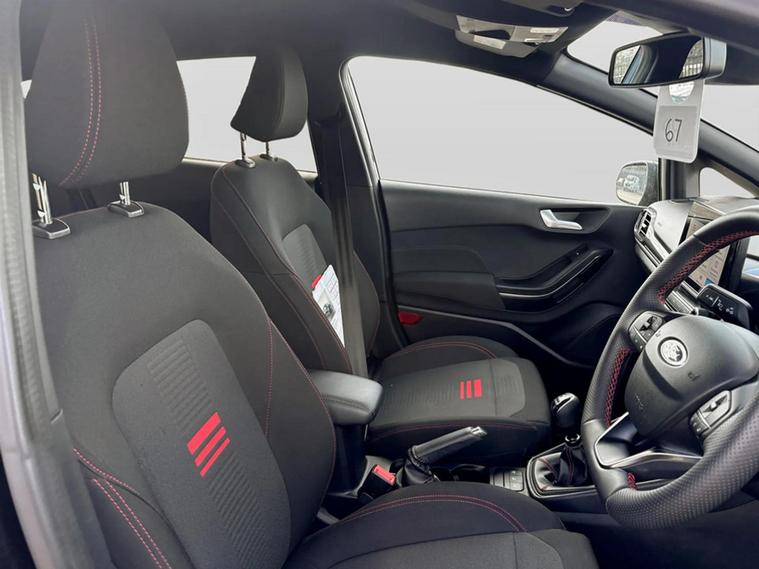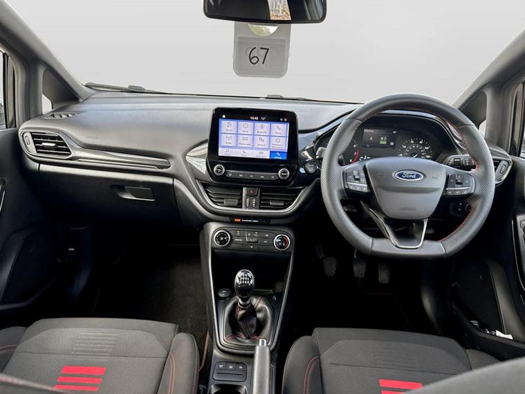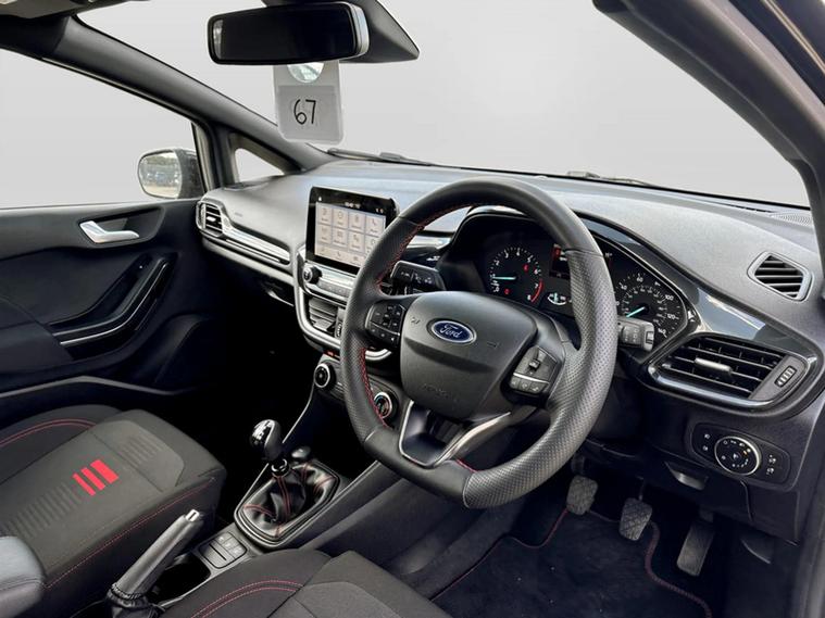 This 2023 Ford Fiesta ST Line boasts exceptionally low mileage, having covered just 8429 miles, making it a standout choice for its age. This particular model is equipped with a responsive 1.0 litre petrol engine and meets the Euro 6 emission standards. Further enhancing its appeal, this Fiesta comes equipped with some fantastic features such as Lane keep assist, Selectable drive modes (Normal, Sport, Track), Rear parking distance sensors, Rain sensing wipers and auto dimming rear view mirror, Rear privacy glass, Quickclear heated windscreen, Automatic headlights and 17'' Alloy wheels with rock metallic finish to give it that sporty look! Not only does this vehicle come equipped with some fantastic features it also comes with single ownership and full service history with the vehicle being due to be serviced every 2 years which was last done on the 31st of Jan 2025 5, 357 miles meaning the next one will be due in Jan 2027. The ST Line trim level offers a sporty aesthetic and enhanced driving experience, setting this Fiesta apart from other models. Its minimal mileage suggests it has been lightly used and well cared for, indicating a superior condition compared to many other vehicles of the same age. This Ford Fiesta represents a compelling option for those seeking a reliable and engaging compact car.