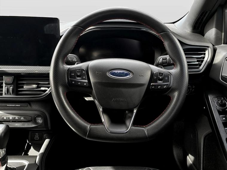 This 2023 Ford Focus T ST-Line Vignale is a superb example, having had only one owner since new. This stylish hatchback features the desirable ST-Line Vignale trim, powered by an efficient 1.0 litre petrol hybrid engine that meets Euro 6 emissions standards. It also comes packed with handy features like heated seats and steering wheel, electric control driver seat, wireless smartphone charging, parking sensor display, satellite navigation and more! Experience impressive performance with a swift 0-62mph acceleration time of just 8.4 seconds, demonstrating how this Focus offers a more engaging drive compared to many other vehicles in its class. This combination of low ownership and dynamic performance makes this Ford Focus a compelling choice.