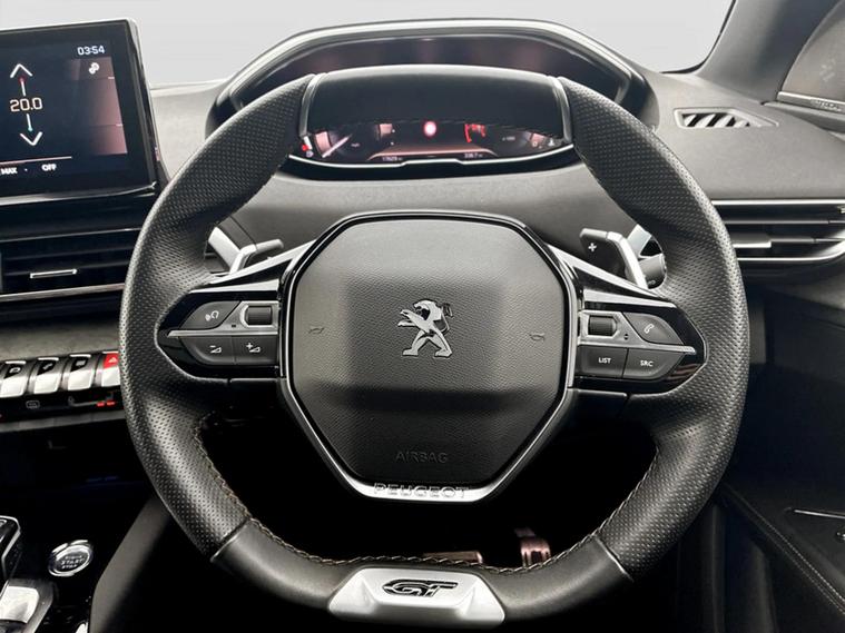 - Peugeot i-cockpit with configurable 12.3 headup digital instrumental panel and compact sports steering wheel