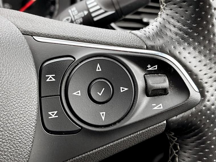 - 3 spoke flat bottom electrically heated perforated leather steering wheel with satin chrome effect bezel
