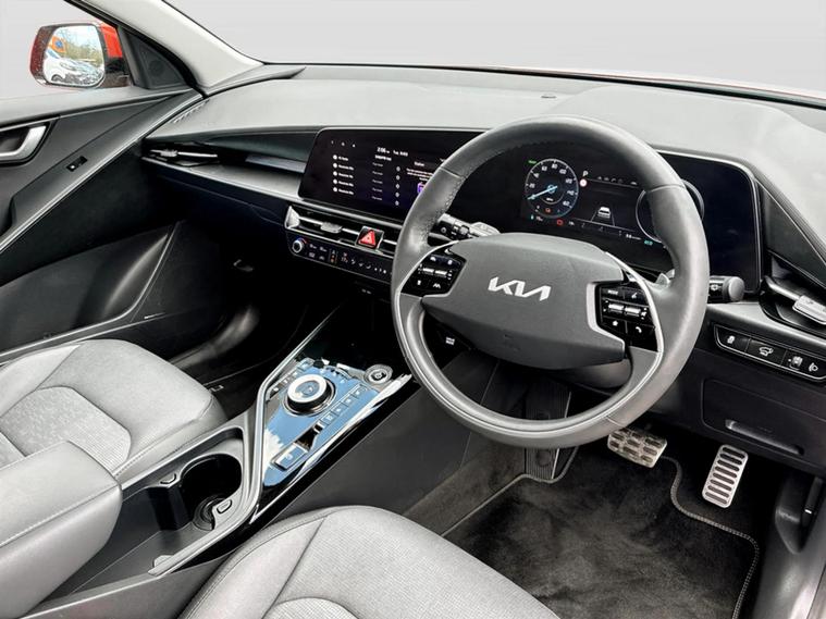 Discover this 2022 Kia Niro 4, an electric vehicle offering an impressive maximum range of 285 miles when new, perfect for your daily commutes and longer journeys. This model boasts a substantial 68 kWh battery, ensuring efficient power delivery. Charging is convenient, with a full charge at home taking approximately 9 hours and 25 minutes using a 7kW charger, and a rapid charge to 80% achievable in just 43 minutes at a public charging station. The Kia Niro 4 is equipped with a suite of features designed for comfort and ease of use. You'll appreciate the heated steering wheel for those colder mornings and the driver's power adjusted memory seat, allowing you to save your preferred driving position. Parking is made simpler with both front and rear parking sensors, including parking assistance. Stay connected and entertained with Bluetooth connectivity for music streaming. Furthermore, this electric Kia Niro offers a large boot space, providing ample room for your shopping or luggage, making it a practical choice for everyday life.
