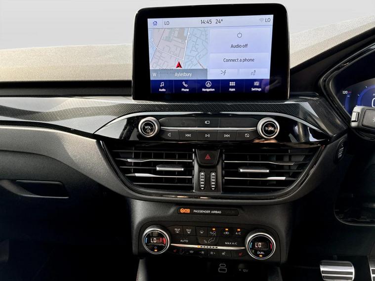 2023 Ford Kuga ST Line X Plug-in Hybrid variant is equipped with a 2.5 litre petrol plug in hybrid engine, meeting Euro 6 emissions standards. It comes fitted with the desirable Driver Assistance Pack, which includes Blind Spot Assistance and Adaptive Cruise Control, alongside front and rear parking sensors and cameras for effortless manoeuvring. The Technology Pack enhances your driving experience with a Head Up Display and LED headlights, while the power opening panoramic roof adds a sense of spaciousness and light. The Ford Kuga ST Line X is designed to impress with its advanced features. The inclusion of the Driver Assistance Pack, featuring Blind Spot Assistance and Adaptive Cruise Control, demonstrates a higher level of safety and convenience compared to many other vehicles. Furthermore, the Technology Pack, with its Head Up Display and LED headlights, provides a more sophisticated and user friendly driving environment. The front and rear parking sensors and cameras, combined with the power opening panoramic roof, further elevate the Kuga's appeal, making it a well equipped and practical choice for any driver.