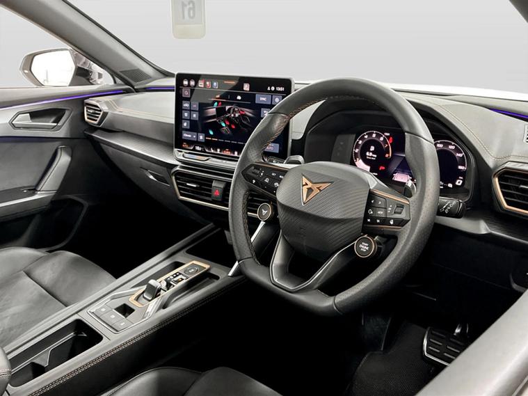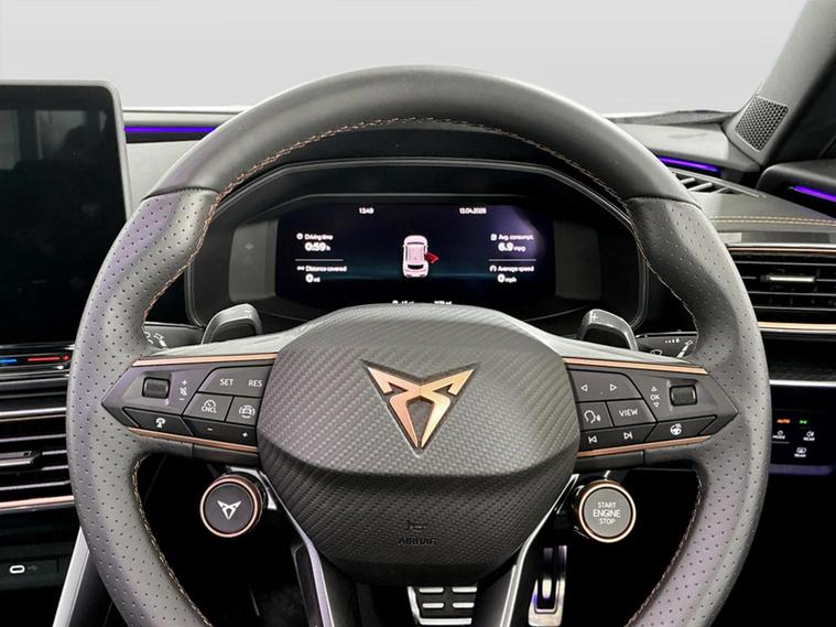 Boasting exceptionally low mileage for its age, this 2025 CUPRA Formentor TSI VZ1 presents a remarkable opportunity. With only one owner since new and an MOT valid until April 2028, this Euro 6 compliant vehicle has covered a mere 2175 miles. It features a powerful 2.0 litre petrol engine and comes equipped with a rear diffuser housing a single exhaust pipe on each side, a wireless phone charger, and a rear view camera for enhanced parking assistance. Experience dynamic performance with the Formentor TSI VZ1, capable of accelerating from 0 to 62mph in just 6.5 seconds, a figure that sets it apart from many other vehicles in its class. Further elevating its appeal are the adaptive cruise control with follow to stop functionality and speed limiter, alongside heated front seats for added comfort during your journeys. These features combine to offer a superior driving experience, making this CUPRA Formentor a truly compelling choice.
