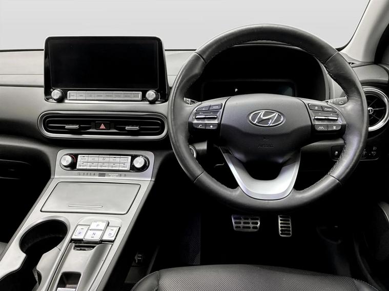 This 2023 Hyundai KONA Ultimate Electric boasts an MOT valid until February 2027, offering peace of mind for years to come. This impressive electric vehicle features a substantial 68 kWh battery, providing a maximum range of 300 miles when new. For convenience, a full charge at home using a 7kW charger takes approximately 10 hours and 16 minutes, while rapid public charging can replenish the battery from empty to 80% in just 53 minutes. Inside, you'll find a host of desirable features including a heated steering wheel and heated front seats for ultimate comfort, smart adaptive cruise control with stop and go functionality for effortless journeys, a wireless phone charging pad, and blind spot collision avoidance assist for enhanced safety. The Hyundai KONA Ultimate Electric stands out with its exceptional range of 300 miles, a key advantage over many other electric vehicles in its class. This extended range means fewer stops and more freedom to explore. The combination of its efficient electric powertrain, comprehensive safety features like blind spot assist, and comfort enhancing amenities such as heated seats and steering wheel, positions this KONA as a superior choice for those seeking a practical, modern, and capable electric car.