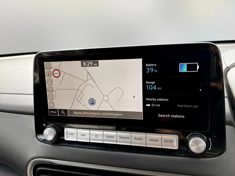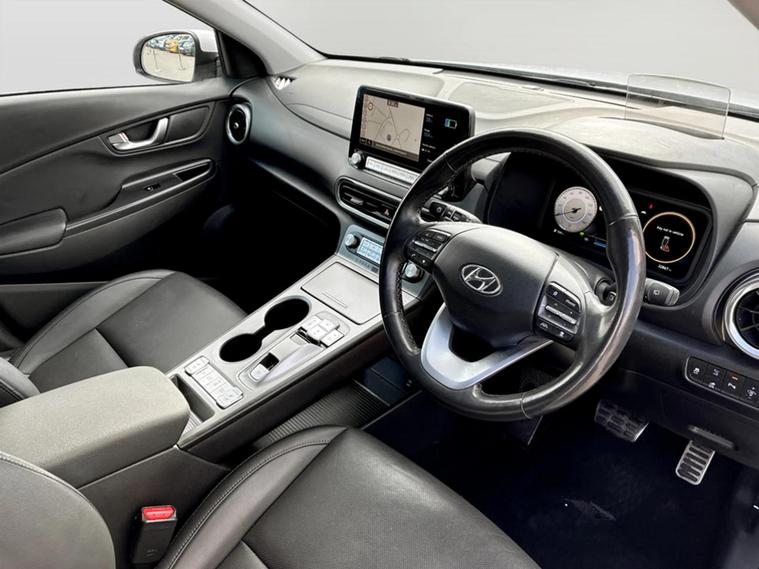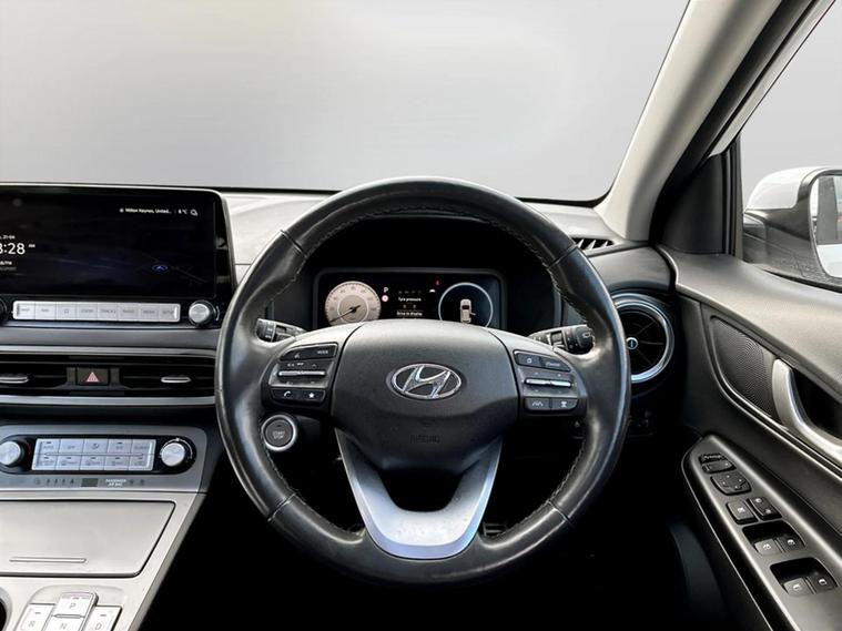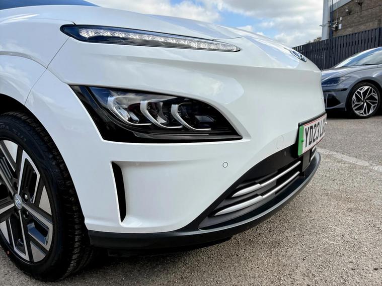 This 2023 Hyundai KONA Ultimate Electric boasts an MOT valid until January 2027, offering excellent peace of mind. This stylish electric SUV features a substantial 68 kWh battery, providing a maximum range of 300 miles when new. Inside, you'll find a host of convenient features designed for comfort and ease of use, including Smart Adaptive Speed Control with Stop and Go, heated front seats, and a heated steering wheel for those colder days. The Ultimate trim also includes automatic headlights with a dusk sensor and a wireless phone charging pad, ensuring you stay connected and comfortable on every journey. The Hyundai KONA Ultimate Electric is designed to impress, with its impressive 300 mile range highlighting its capability for both daily commutes and longer trips. Charging is also made convenient, with a full charge at home taking approximately 10 hours and 16 minutes using a 7kW charger, and a rapid charge to 80% achievable in just 53 minutes at a public charging station. These charging times and the extensive range demonstrate how this KONA offers a superior electric driving experience compared to many other vehicles in its class.