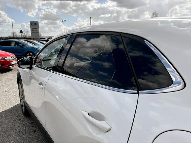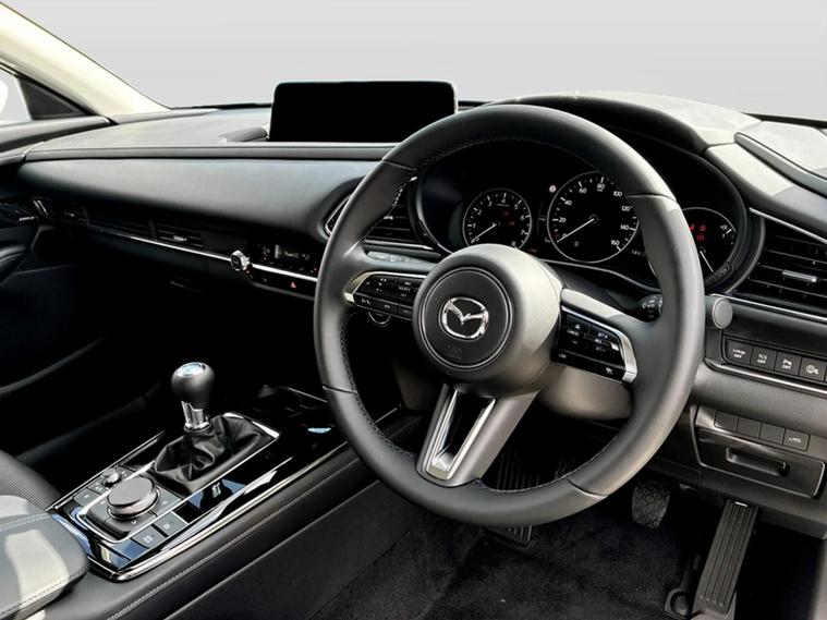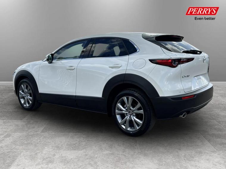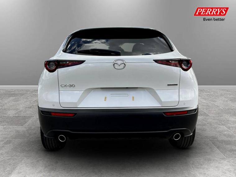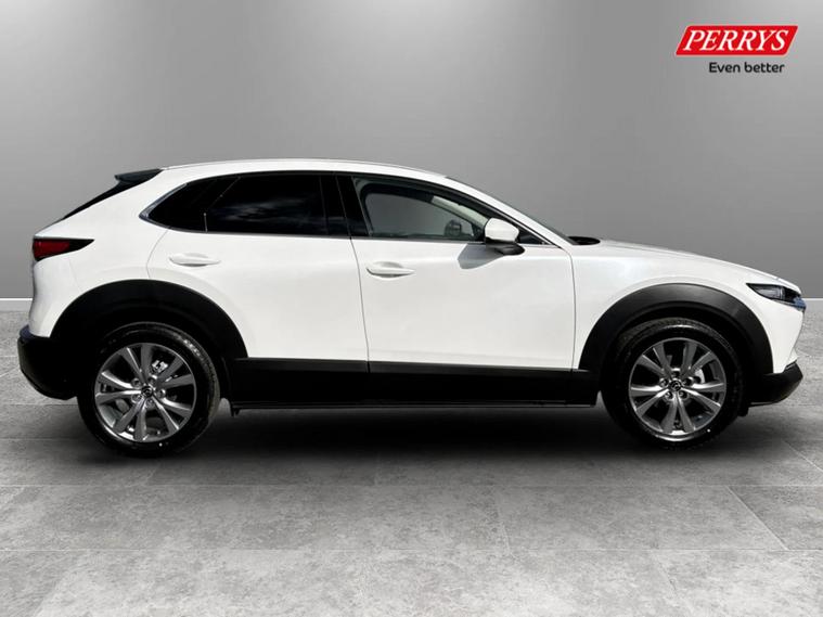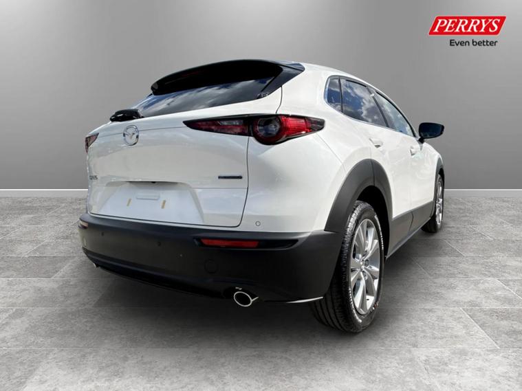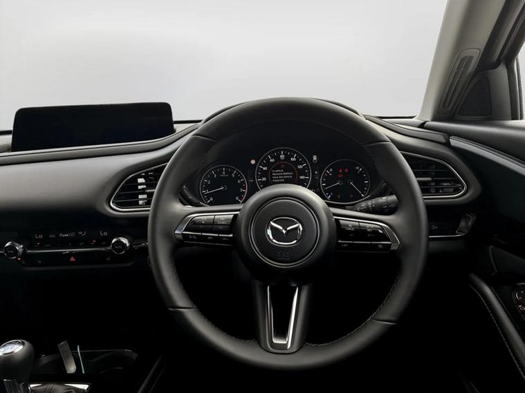 Crafted with precision and inspired by Japanese aesthetics, the Mazda CX-30 redefines everyday driving. Offering enhanced comfort and exciting performance, it achieves efficiency without compromise. Powered by the advanced 2.5 e-Skyactiv G engine with Mazda M Hybrid Technology, the Mazda CX-30 brings you cutting-edge connectivity and the latest iActivsense safety technologies, delivering confidence, comfort and excitement on every journey. Now available with the 6 year Mazda warranty come and take a look at this stunning Exclusive Line version of the popular Mazda CX-30, this one finished in the mesmerising Snowflake White pearlescent paint. Take advantage of the great saving on list price with this pre-registered Mazda CX-30 in the Exclusive-Line edition. This Mazda CX-30 has a long list of features including :- 10.25-inch TFT Colour centre display featuring Mazda Connect infotainment Alexa AM / FM / DAB radio featuring 12-Speaker Bose surround sound system, with Bose CentrePoint, Bassmatch and AudioPilot technology with USB Type-C inputs Head-up Display ? Windscreen projected colour Active Driving Display Bluetooth® Integrated Mazda Hybrid Navigation system with 7-years free map updates Qi Wireless charging for smartphone Wireless Apple Carplay® and Android AutoTM Dual-zone climate control air conditioning with rear air-vents Instrument panel - 7" TFT Colour driver display Adaptive LED Headlights Front and rear parking sensors Power Liftgate Privacy glass Blind Spot...
