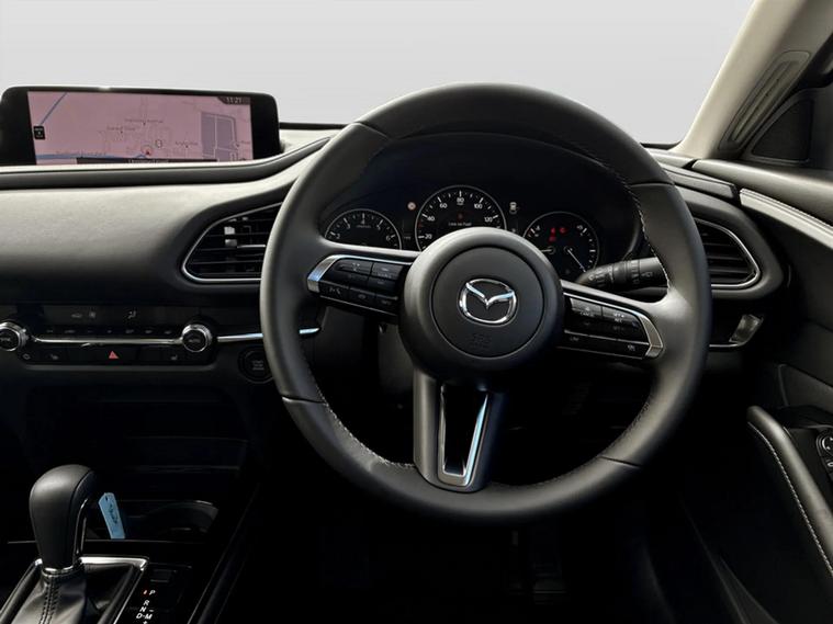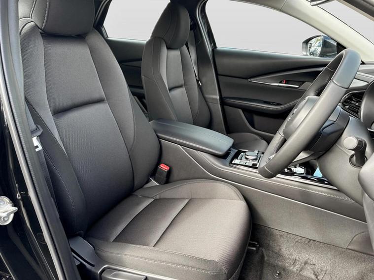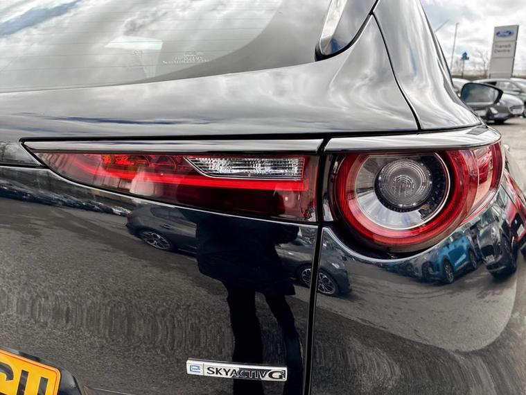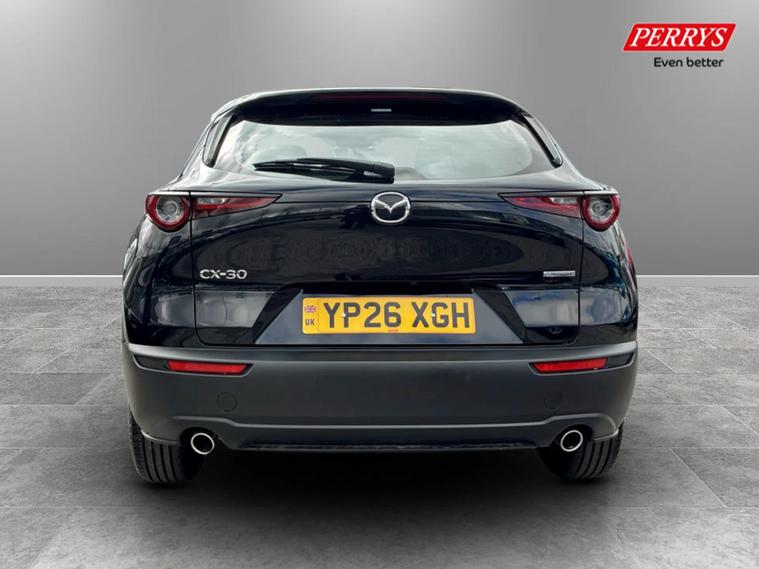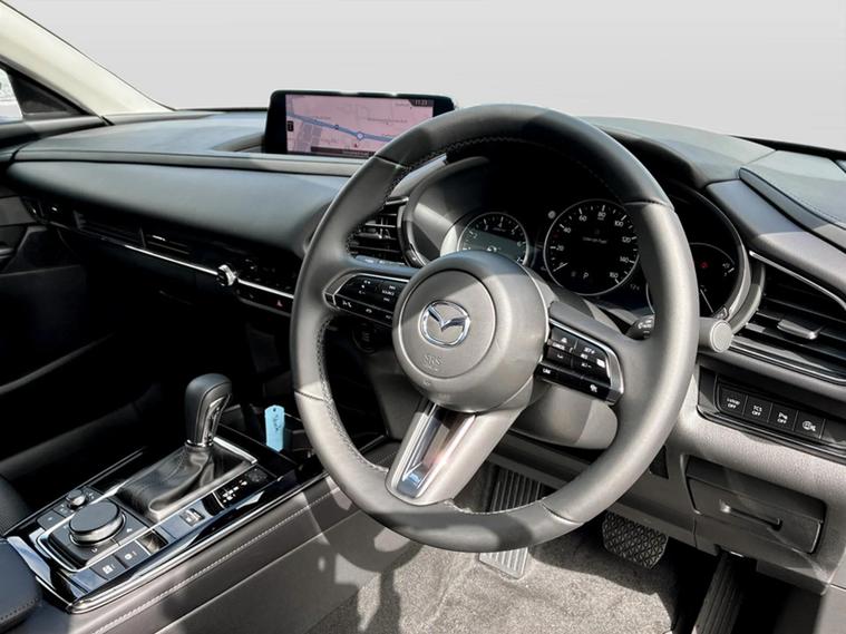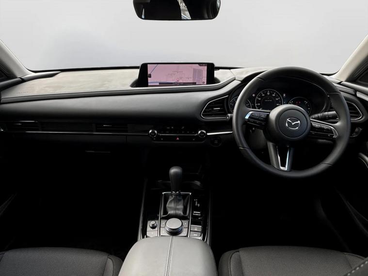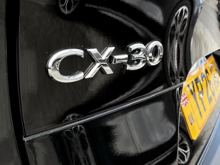 Crafted with precision and inspired by Japanese aesthetics, the Mazda CX-30 redefines everyday driving. Offering enhanced comfort and exciting performance, it achieves efficiency without compromise. Powered by the advanced 2.5 e-Skyactiv G engine with Mazda M Hybrid Technology, the Mazda CX-30 brings you cutting-edge connectivity and the latest iActivsense safety technologies, delivering confidence, comfort and excitement on every journey. Now available with the 6 year Mazda warranty come and take a look at this stunning Exclusive Line version of the popular Mazda CX-30, this one finished in the striking Jet Black metallic paint. Take advantage of the great saving on list price with this pre-registered Mazda CX-30 in the Centre Line Automatic edition. This Mazda CX-30 has a long list of features including :- 10.25-inch TFT Colour centre display featuring Mazda Connect infotainment Alexa AM / FM / DAB radio featuring 12-Speaker Bose surround sound system, with Bose CentrePoint, Bassmatch and AudioPilot technology with USB Type-C inputs Head-up Display ? Windscreen projected colour Active Driving Display Bluetooth® Integrated Mazda Hybrid Navigation system with 7-years free map updates Qi Wireless charging for smartphone Wireless Apple Carplay® and Android AutoTM Dual-zone climate control air conditioning with rear air-vents Instrument panel - 7" TFT Colour driver display Adaptive LED Headlights Front and rear parking sensors Power Liftgate Privacy glass Blind Spot Moni...