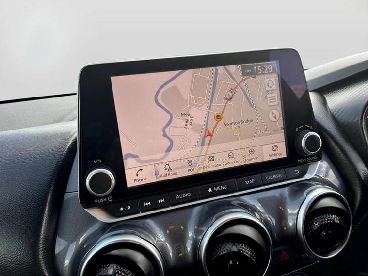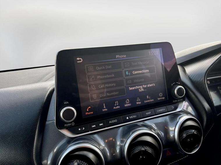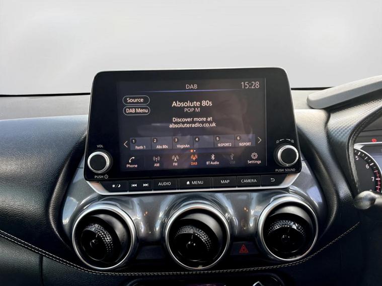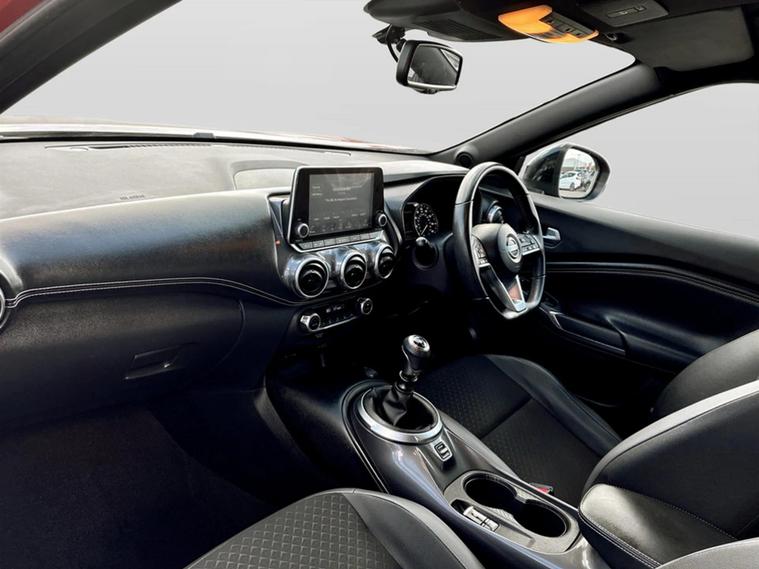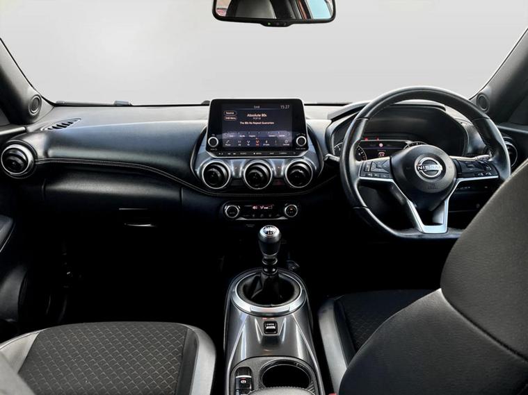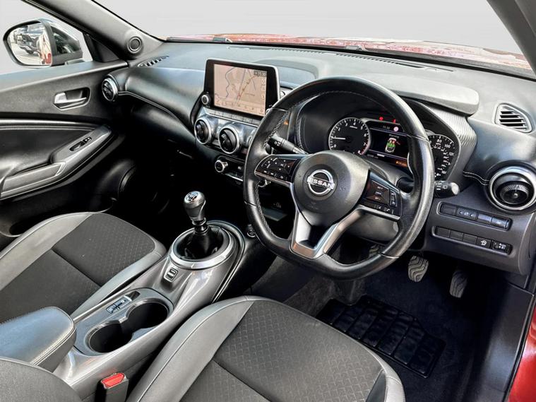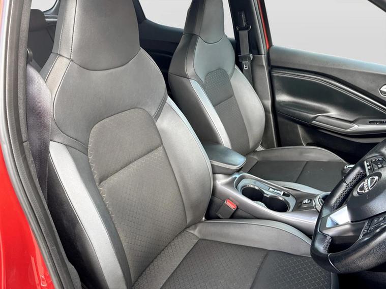 - Cloth upholstery with black and metallic grey syntech leather inserts