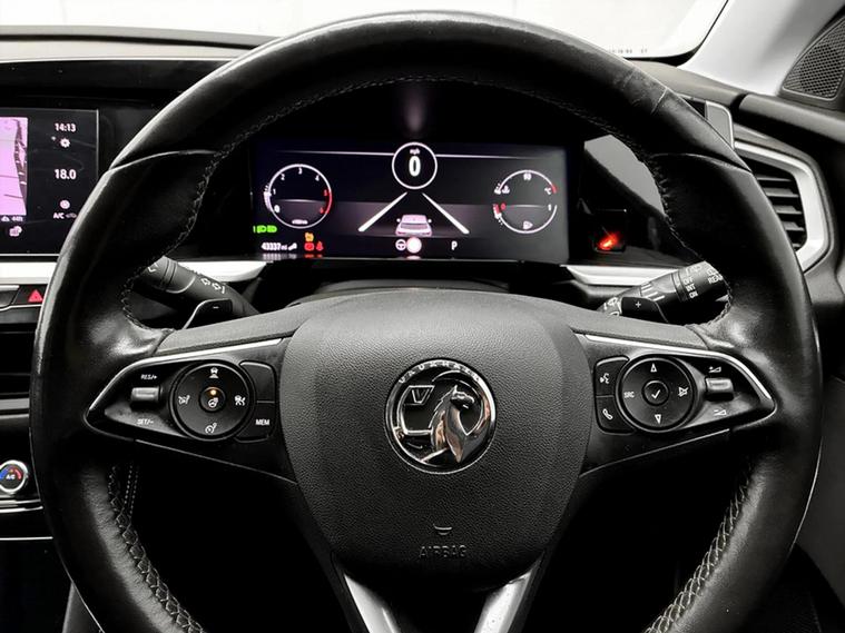 This 2022 Vauxhall Grandland Turbo D Ultimate will have its MOT renewed, offering you peace of mind for years to come. This Euro 6 compliant model features a 1.5L Diesel Engine and comes in the top of the range Ultimate trim. Notable features include Automatic Lighting Control with automatic headlights, Keyless Entry and Start for effortless access, and Side Blind Spot Alert for enhanced safety. The Vauxhall Grandland Turbo D Ultimate is designed to impress with its excellent fuel economy, achieving a highlight of 52 mpg. This vehicle also benefits from a low insurance group, making it an economical choice for many drivers. You'll appreciate the large boot space, perfect for luggage or shopping, and its low CO2 emissions further contribute to its appeal. These highlights demonstrate how this Grandland offers a superior driving experience compared to similar vehicles.