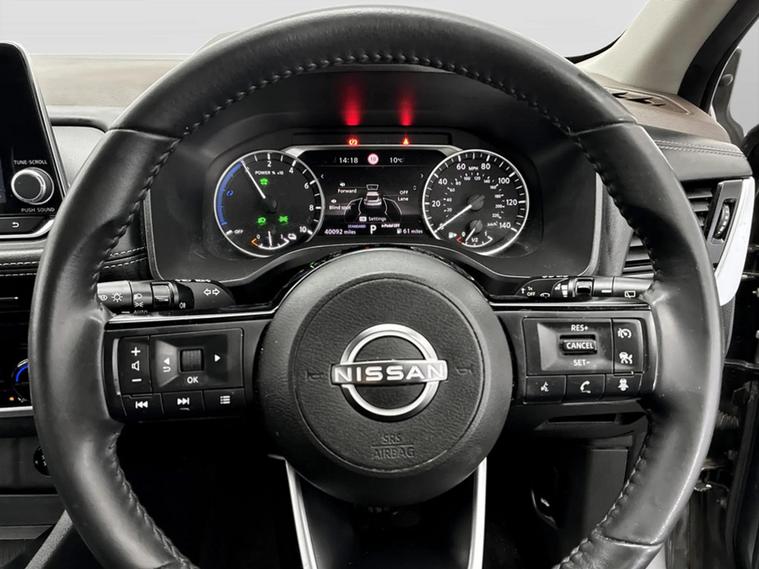 This 2023 Nissan X-Trail h e-POWER Acenta Premium boasts an MOT valid until September 2026, offering you peace of mind for years to come. This Four Wheel Drive model features a 1.5L Petrol Hybrid engine and seating for seven, making it a versatile choice for families and adventurers alike. It meets Euro 6 emission standards and comes equipped with convenient features such as a Wireless Charging Pad, Approach Unlock and Walk Away Lock for keyless entry, Blind Spot Warning for enhanced safety, a Rear View Camera for easier parking, and bright LED Headlights. Experience impressive performance with an acceleration of 0-62mph in just 7.0 seconds, a figure that sets this X-Trail apart from many others in its class. The generous boot space ensures you have ample room for luggage, shopping, or sports equipment. This Acenta Premium trim level combines practicality with modern technology, offering a comfortable and efficient driving experience. Previously serviced on 14/3/2024 at 10, 347 miles, 17/10/2024 at 21, 112 miles, 12/6/2025 at 30, 030 miles, 19/2/2026 at 38, 327 miles and it will be fully inspected by our qualified vehicle technicians on site. With 2 keys.