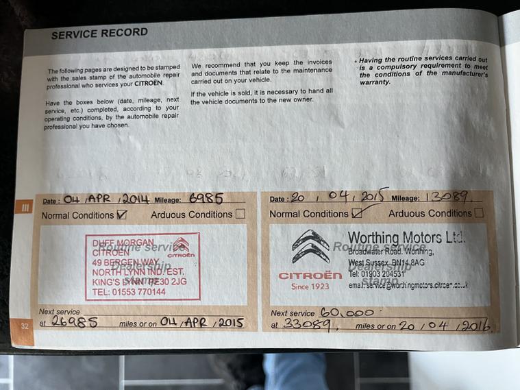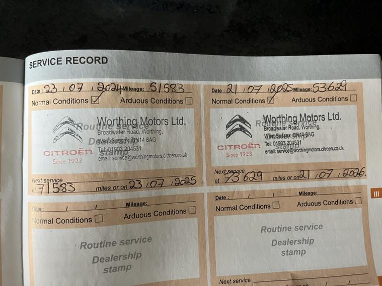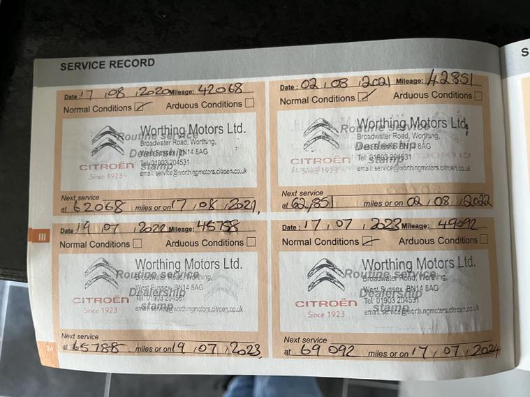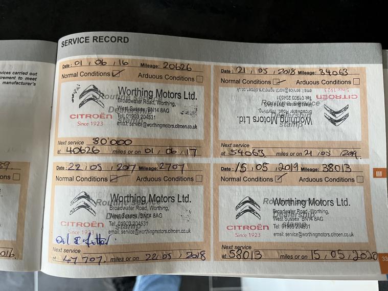 Great service history, 12 Citroen main dealer stamps, Direct from local Citroen dealer. Last service done at Worthing motors Citroen in July 25 at 53, 629 mls
