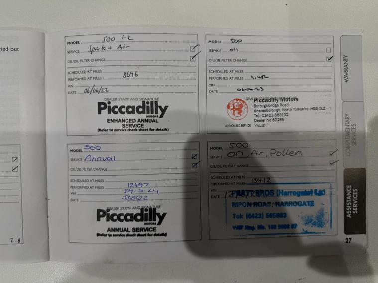 **Fiat 500 1.2 Lounge (2019/19) Low Mileage, Stylish & Perfect City Car**, This 2019 (19) Fiat 500 1.2 Lounge is a fantastic example of a stylish and well-maintained city car, combining iconic design with low running costs and everyday practicality. Finished in a charming green and having covered just 14, 171 miles, this vehicle has had only 2 owners from new. Powered by a reliable 1.2-litre petrol engine producing 69hp, this Fiat 500 offers a smooth and economical driving experience, making it ideal for urban driving, first-time drivers, or those looking for a compact and easy-to-run vehicle. The manual gearbox adds to the fun and control, perfectly suited to city streets and short journeys. The Lounge specification is one of the most popular trims, offering a great level of comfort and features, including a bright and airy cabin feel and stylish interior touches that complement the cars retro-inspired exterior. This vehicle benefits from a full and consistent service history, showing excellent upkeep:, * 07/20 3, 000 miles, * 06/21 6, 000 miles, * 06/22 8, 000 miles, * 06/23 11, 000 miles, * 05/24 12, 000 miles, * 06/25 13, 000 miles, The MOT is valid until 27/06/2026, providing peace of mind for the next owner. This is an excellent opportunity to own a low-mileage, economical, and stylish Fiat 500 thats ready to drive away and enjoy. We are a trusted family-run business with over 100 five-star reviews across AutoTrader, Google, and Feefo, and proud winners of the 20242025 Highly Rated AutoTrader award. Hedgeway Motors is FCA registered, ensuring a professional and trustworthy buying experience. For more information or to arrange a viewing, please contact us on 01274914108 or visit:, dealer's website