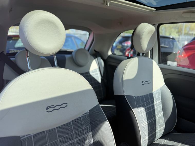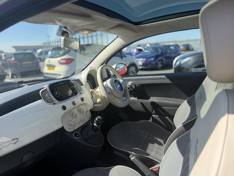 Fiat 500 1.2 Lounge Premium Spec, Iconic Design & Everyday Efficiency, This Fiat 500 1.2 Lounge is the perfect mix of style, comfort and low-cost motoring, offering a premium feel in a compact, city-friendly package. Powered by the reliable 1.2 petrol engine (69bhp), this model is well known for its low running costs, strong reliability and excellent fuel economy, typically achieving around 60mpg combined depending on driving style . Its smooth, easy to drive and ideal for both town and everyday commuting. The Lounge model sits higher in the range and brings a much more refined driving experience, with standout features including:, * Panoramic glass roof creating a bright, airy cabin, * Touchscreen infotainment system with Bluetooth & DAB, * Alloy wheels, * Air conditioning, * Multifunction steering wheel, * USB connectivity, Inside, the Fiat 500 offers a comfortable, characterful interior with a high driving position and excellent visibility, making it incredibly easy to manoeuvre and park in tight spaces . On the road, it delivers a relaxed and effortless drive, perfectly suited to urban environments while still capable on longer journeys when needed. Its compact size and light steering (including city mode) make it one of the easiest cars to live with day-to-day . If youre looking for a car that offers:, Premium Lounge specification, Low insurance and running costs, Stylish, iconic design, Easy driving and parking, this Fiat 500 is an excellent choice.