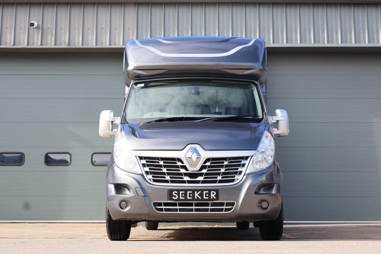 uilt on the desirable Renault Master chassis and coachbuilt by the renowned and highly respected Freddie Gover Coachbuilders, this horsebox offers exceptional quality and craftsmanship throughout. Seeker UK has further enhanced it with dual rear leaf springs, upgraded shock absorbers, and heavy-duty all-terrain tyres fitted to alloy wheels, creating a complete horse safety package. These upgrades provide a smoother ride, improved stability, and increased payload strength for safer, more reliable transport. The cab is finished with comfortable front leather seats, offering a refined driving experience. To the rear, there is a well-designed living area complete with a gas hob and practical storage, making it ideal for longer days out. An external tack locker provides secure and convenient storage for all your equipment. Further features include a reverse camera for easy manoeuvring, a fan in the horse area for improved ventilation and comfort, and an onboard CCTV system so you can monitor your horses while travelling. This horsebox boasts exceptionally low mileage for its year and is presented in excellent condition. Any inspection is warmly welcomed. A viewing is strongly recommended to fully appreciate the outstanding quality, detail, and craftsmanship of this superb build.