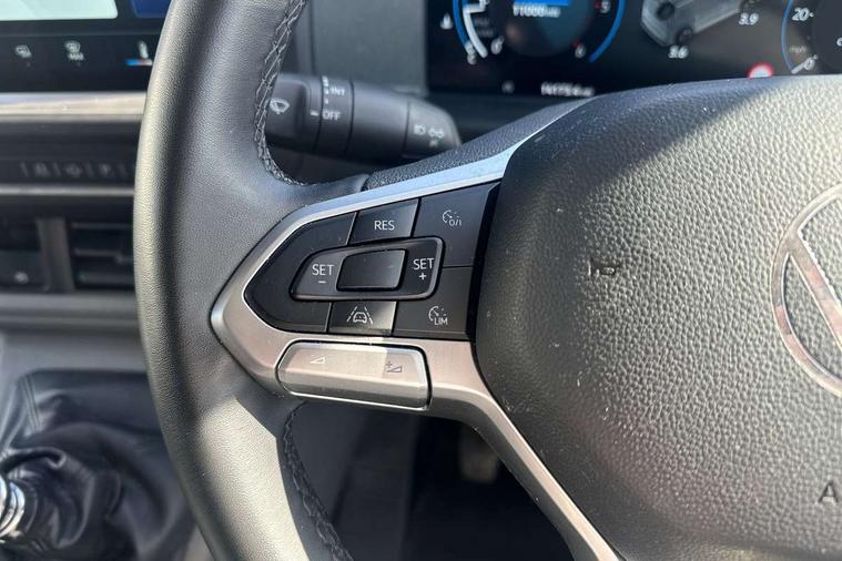 12" digital drivers display, 13" touchscreen infotainment display with wireless app connect and DAB radio, 5G Modem, Apple CarPlay and Android Auto, Cruise control, Dynamic road sign display, eCall emergency system, Electromechanical speed sensitive power steering, height and longitudinally adjustable steering column, Lane assist, Preparation of VW connect and connect plus, Wrong way driver warning, 4 speakers - 2x dashboard, 2x cab doors, Body coloured door handles, Heat reflecting side window glass, Mud flaps front and rear, Rear Transporter nameplate in black grained decorative trim, Vehicle opening configuration 1x 1st row of seats, 2x all doors, 2x 15-W USB data/charging ports in dashboard and 1x USB-C, 1x USB-A center bottom, 2x LED lights in load compartment, 3 spoke leather wrapped multi function steering wheel, 4 way height and tilt adjustable head restraints, Black plastic scuff plate for sliding door in cargo without illumination, Cabin interior lighting, Lashing rings for reinforced floor covering, Leatherette gear lever, Narrow centre console with cup holder and compartment for mobile phone, Overhead storage compartment, Roof grab handle on front passenger side, Rubber floor covering in cab, Striped fabric upholstery, Without passenger seats in load compartment, Driver and front passenger airbag with front passenger airbag deactivation, Dual tone horn, Front and curtain airbags for driver and front passenger, Seat belt pretensioner for driver seat, Anti theft alarm system with interior monitoring in cab, backup horn and towing protection, Electronic immobiliser, Preparation for alcohol ignition interlock, 5+ Promise, Alternator - 230A, Electronic stability control, ABS, ASR with deactivation button, hill start assist and brake assist system,