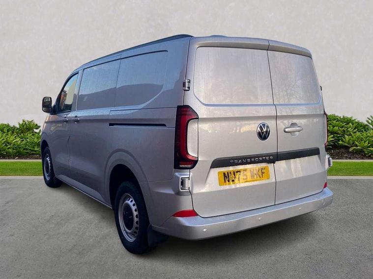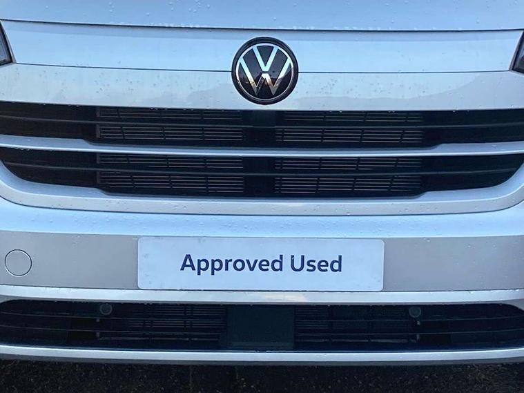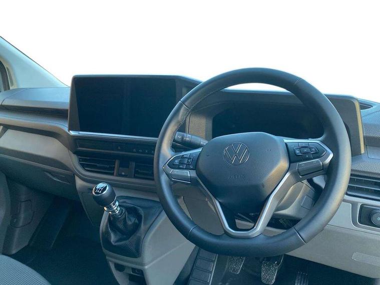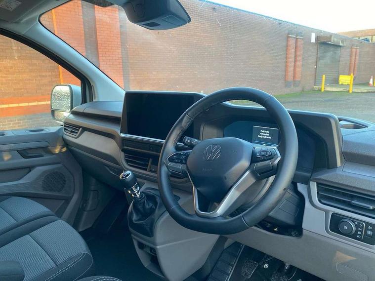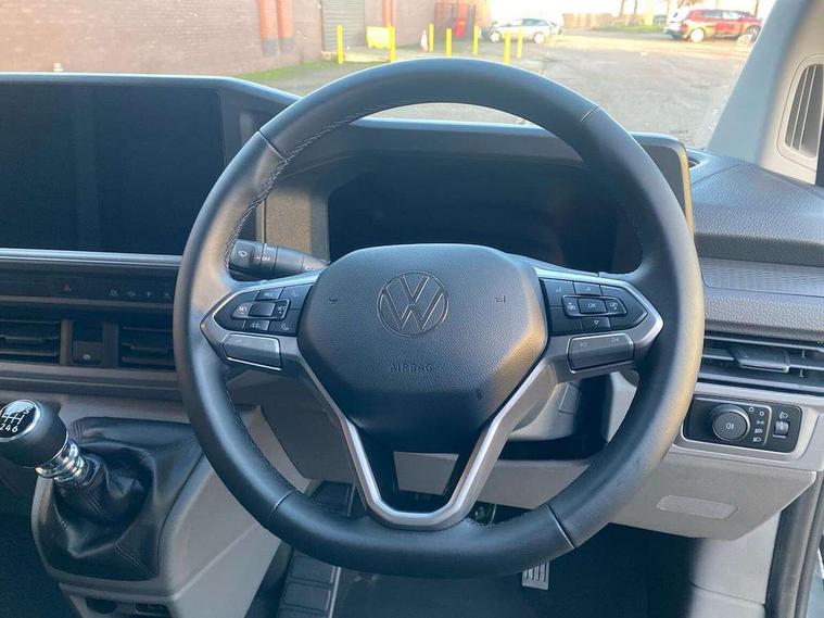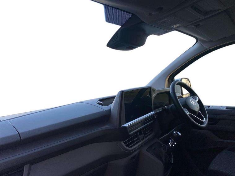 12" digital drivers display, 13" touchscreen infotainment display with wireless app connect and DAB radio, 5G Modem, Apple CarPlay and Android Auto, Cruise control, Dynamic road sign display, eCall emergency system, Electromechanical speed sensitive power steering, height and longitudinally adjustable steering column, Lane assist, Preparation of VW connect and connect plus, Wrong way driver warning, 4 speakers - 2x dashboard, 2x cab doors, Body coloured door handles, Heat reflecting side window glass, Mud flaps front and rear, Rear Transporter nameplate in black grained decorative trim, Vehicle opening configuration 1x 1st row of seats, 2x all doors, 2x 15-W USB data/charging ports in dashboard and 1x USB-C, 1x USB-A center bottom, 2x LED lights in load compartment, 3 spoke leather wrapped multi function steering wheel, 4 way height and tilt adjustable head restraints, Black plastic scuff plate for sliding door in cargo without illumination, Cabin interior lighting, Lashing rings for reinforced floor covering, Leatherette gear lever, Narrow centre console with cup holder and compartment for mobile phone, Overhead storage compartment, Roof grab handle on front passenger side, Rubber floor covering in cab, Striped fabric upholstery, Without passenger seats in load compartment, Driver and front passenger airbag with front passenger airbag deactivation, Dual tone horn, Front and curtain airbags for driver and front passenger, Seat belt pretensioner for driver seat, Anti theft alarm system with interior monitoring in cab, backup horn and towing protection, Electronic immobiliser, Preparation for alcohol ignition interlock, 5+ Promise, Alternator - 230A, Electronic stability control, ABS, ASR with deactivation button, hill start assist and brake assist system,