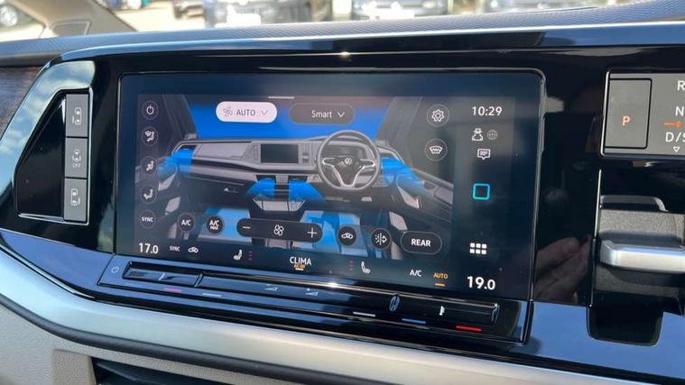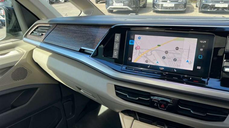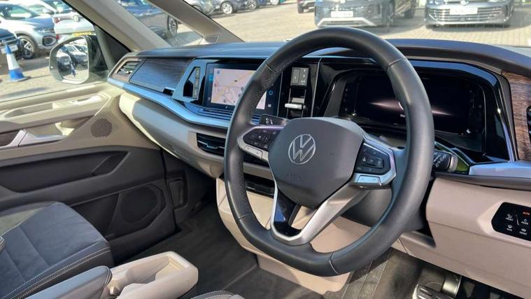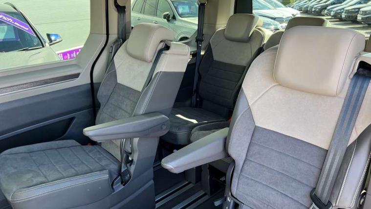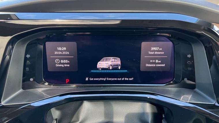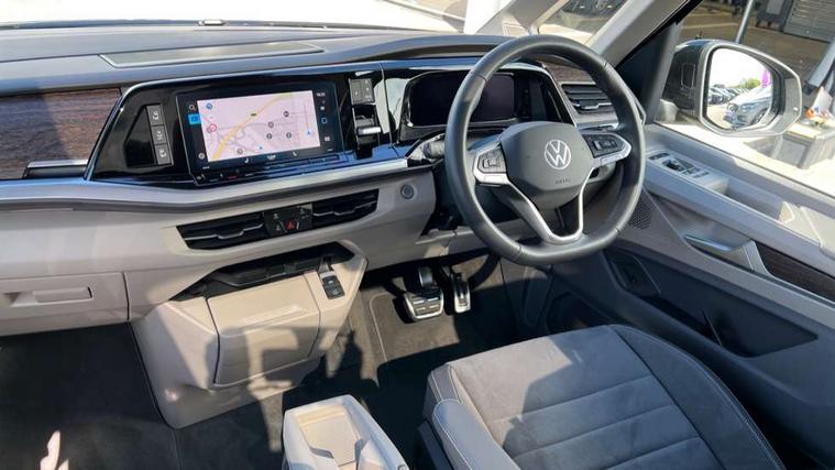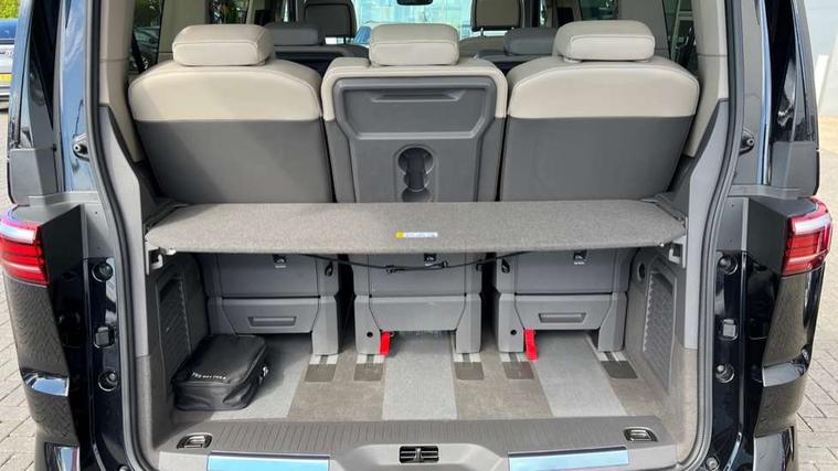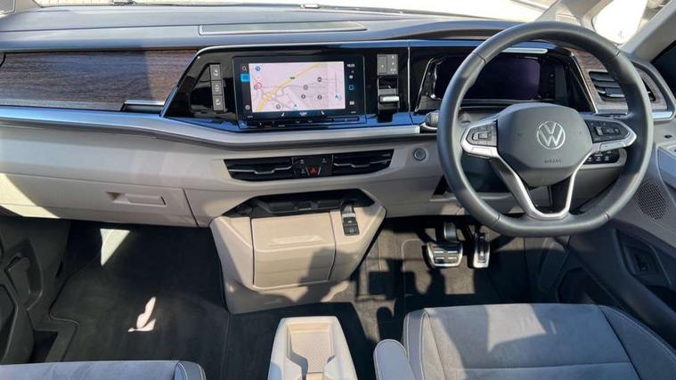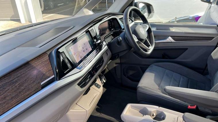 Adaptive cruise control with C2X including front assist and city emergency braking system, Digital Cockpit Pro with 10.25" colour display with adaptable display includes navigation map display, telephone contact images and audio information, Discover media pro navi system with 10" colour touch incl DAB+radio/appconnect for apple carplay/android auto/streaming and internet/gesture control, Driver alert system, Dynamic road sign display, eCall emergency system, Electrically-operated tailgate opening and closing function (Easy open), operated via foot movement under rear tailgate, Emergency assist, Front Cross Traffic Alert, Lane change system with side assist including blind spot monitor, rear traffic alert and exit warning system, Lane keeping system Lane Assist, Mobile phone interface, PAS, Semi-automated driving assistance, Tailgate, Travel assist, Voice control system including Alexa web app, We connect preparation, Electronic differential lock, 2 USB-C ports in front and 4 USB-C ports in passenger compartment, Additional interior noise reduction measures, Advanced high beam control dynamic light assist for LED matrix headlamps, Automatic headlight control with welcome home lights, Body coloured exterior door handles, Break away auto dimming rear view interior mirror, Chrome trim decorative strip mid-way on side and rear, Dynamic headlight range control with dynamic cornering light, Electrically adjustable, heated and folding door mirrors, Front fog lights, Glossy black painted radiator grille with 2 illuminated chrome trims, Heated rear window with window wiper and washer system, Heated windscreen, High gloss black exterior mirror housing, IQ.Light LED matrix headlamps with LED separate daytime running light, Laminated safety glass windshield, heat and sound insulating, LED 3rd brake lamp, LED rear combination lamps, Rear wiper, Stainless steel tailgate trim, Surround lighting in door area and tailgate with logo projection in door area, Windshield wiper intermittent control with rain sensor, 1 x 12V sockets on the dash panel, 12V socket in passenger compartment, 3 seat bench in 3rd row, 30 colours ambient interior lighting and tailgate surround lighting, 7 single seats removable/movable, Carpet mats in cab, Climatronic 3 zone air conditioning with additional control panel in passenger compartment, Front and rear head restraints, Grab handles on A pillar for access, on driver and front passenger side, Height adjustable seats, Height and longitudinal adjustment steering wheel with gear shift paddles, Illumination lockable glovebox compartment, ISOFIX (including i-size) and top tether in all seats in 2nd and 3rd rows, LED luggage compartment lighting X 2, Load compartment partition to 20kg with bag hooks and luggage net, Luggage compartment lid power latching with unlatching from inside, Multifunction leather steering wheel with tiptronic, Reinforced carpet floor covering in passenger compartment, Removable armrests for front seats with power adjustable lumbar support and folding table for 2nd row passenger seats, Single front passenger seat, Slidable multifunction table/centre console with 3 cup holders, Stainless steel pedals, Storage compartment under the 2nd and 3rd row seat and two waste bins, Sun visors with illuminated vanity mirror, ticket holder on driver side with airbag warning label on sunvisor and B-pillar, Easy open package - Multivan, 3x3 point rear seat belts, ABS, Automatic post collision braking system, Autonomous emergency braking front assist with pedestrian and cyclist monitoring, Driver and front passenger airbag with front passenger airbag deactivation, Electric childproof lock, Electronic stability control (ESC) and Electromechanical brake booster, ESP, First aid kit with warning triangle and safety vest, Front disc brakes, Hill hold assist, Seat belt warning for the drivers and all passengers seats if unfastened, Side and curtain airbags for driver and front passenger, curtain airbags for outer seats in rear, centre airbag in front, Single tone horn, Traction control, Tyre pressure monitoring system, Anti theft alarm system with interior monitoring in cab, backup horn and towing protection, Central locking system with interior control and safe lock, Keyless advanced with keyless entry, Start/stop button on centre console, Dark woodgrain optic decorative inserts,
