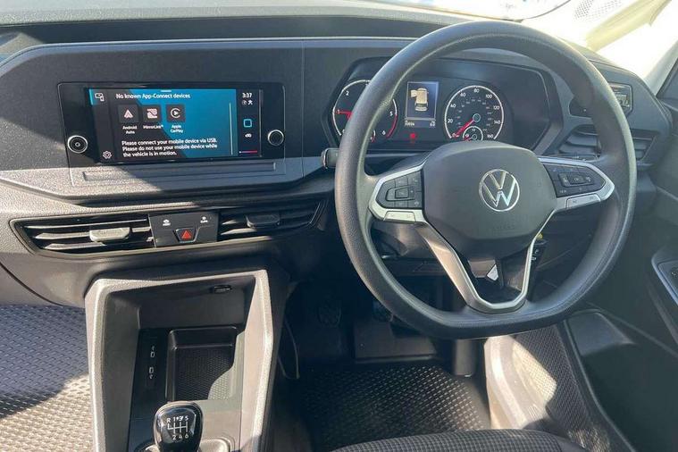 Driver alert system includes drowsiness detection, Emergency call control unit with eCall, Multi-function Display, Seatbelt warning indicator, Service indicator, Start-stop system with regenerative braking, DAB Radio, We Connect Basic Preparation, Automatic hazard light activation under emergency braking, Black front and rear bumpers, Electric front windows, Roof rail preparation, Windscreen wiper with variable intermittent delay and wash-wipe system, Dimming breakaway interior rear-view mirror, Electronically controlled heating system, Interior light in headlining, Lockable glove compartment door with light, Manual height adjustment for front seats, Reach and rake adjustable steering column, Six lashing points for securing loads, Sun visors, with ticket pocket on driver side, 3-point seat belts in front, with pretensioner and height adjustment, Driver and front passenger airbag with front passenger airbag deactivation, Electronic engine immobiliser, Remote central locking with deadlocks, interior locking, Anti locking braking system (ABS), Automatic post collision braking system, Autonomous Emergency Braking Front Assist with Pedestrian Monitoring, Electric parking brake with auto hold function, Electronic brake force distribution (EBD), Electronic differential lock (EDL), Electronic stabilisation programme (ESP), Emergency brake assist, Engine drag torque control (MSR), Hill hold assist, Traction control system (TCS), Decorative beige birch vein inserts,